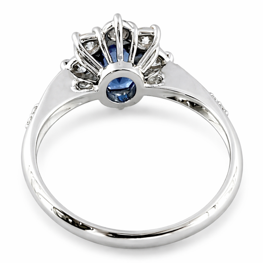 Anello modello "Lady Diana" Diamanti ct 0,48 e Zaffiro centrale ct 0,65 in oro bianco 18kt (750)