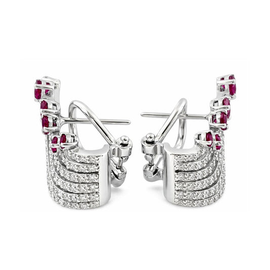 Orecchini a Ventaglio ear climber con Rubino ct 1,25 e Diamanti ct 0,7 in Oro Bianco 18kt (750)