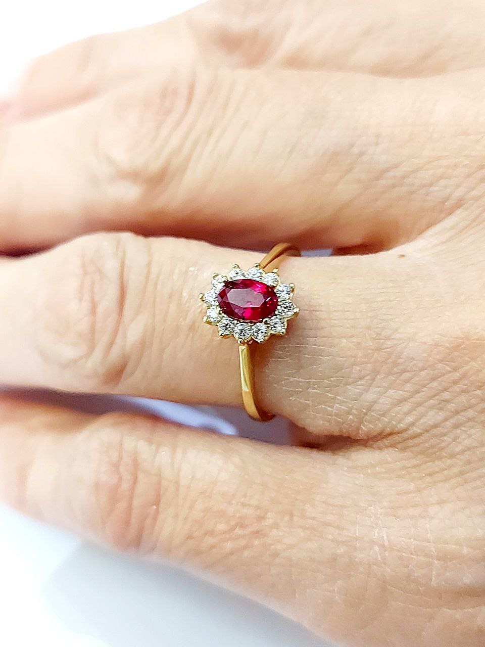 Anello modello Kate Lady fantasia con Rubino ovale 0,72 ct e Diamanti 0,36 lavorato in Oro Giallo 18kt-75O -Grammi 2,30