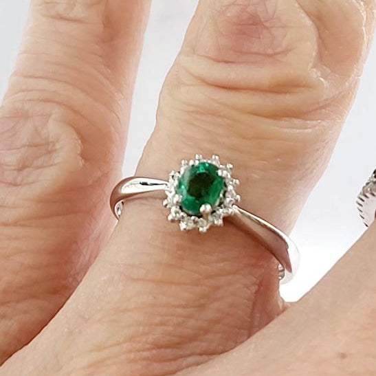 Anello in oro bianco 18k con Smeraldo Ovale ct 0,40 e Diamanti ct 0,10