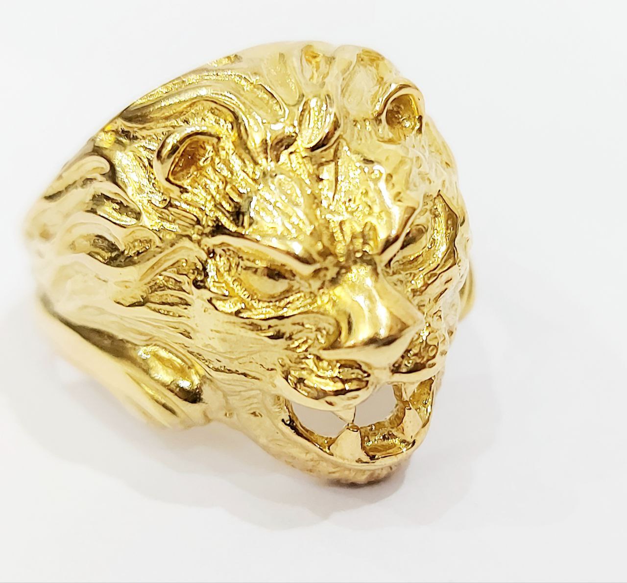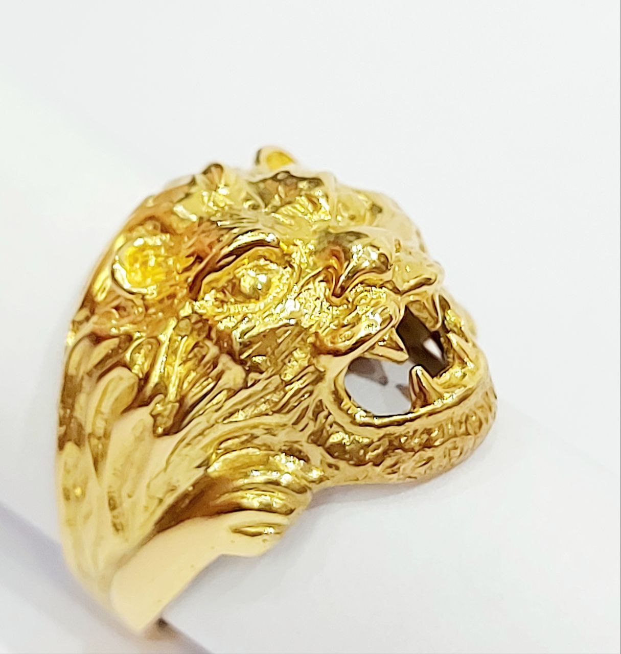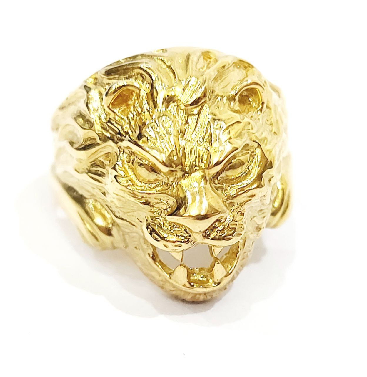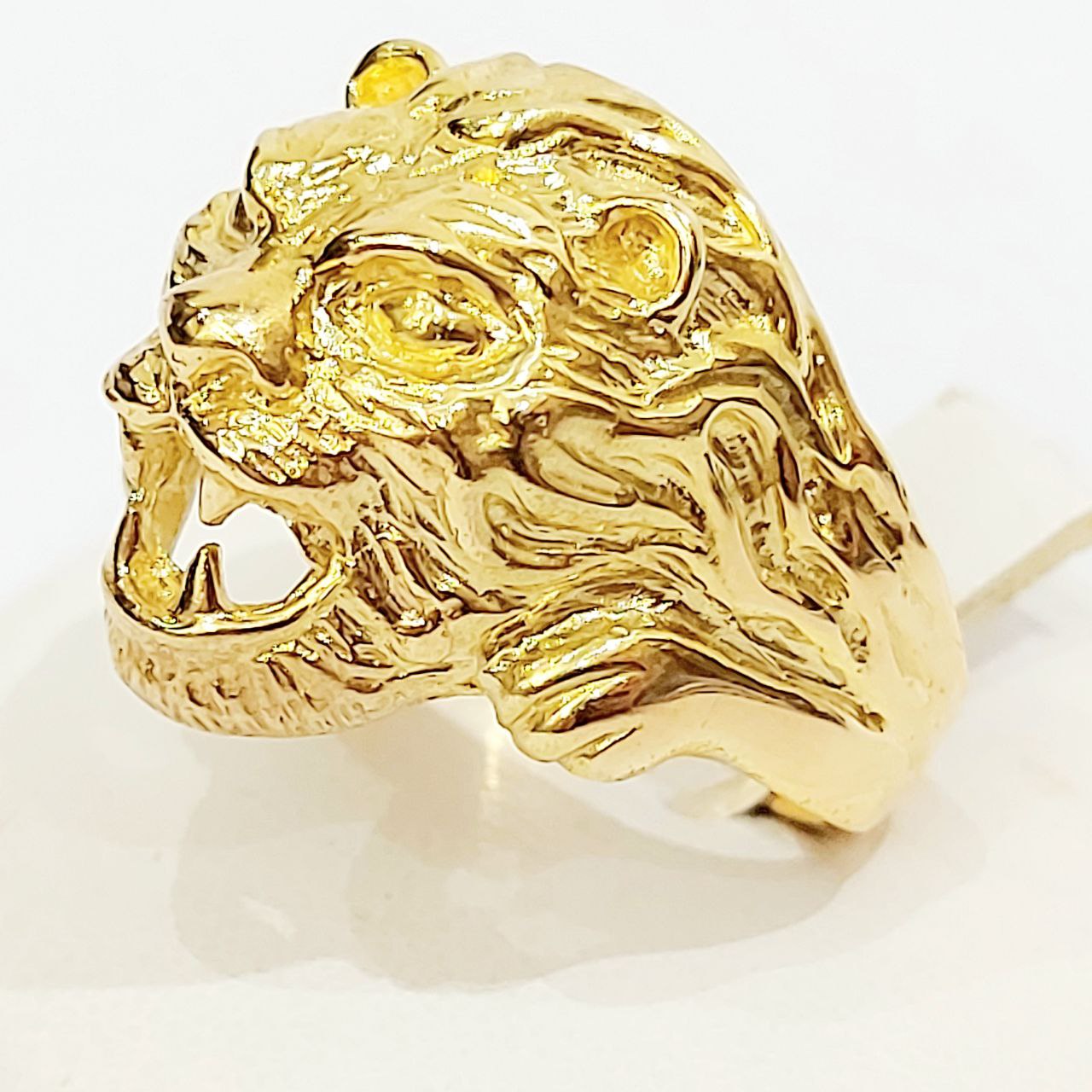Anello testa di Leone in Oro Giallo 18kt-750 realizzato in lavorazione 3D con finitura lucida e satinata