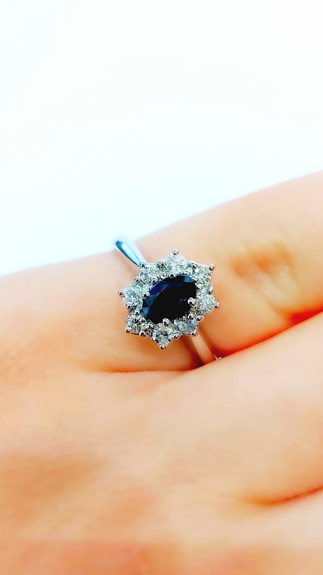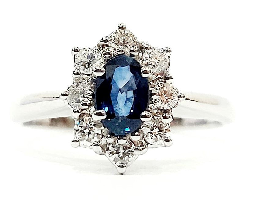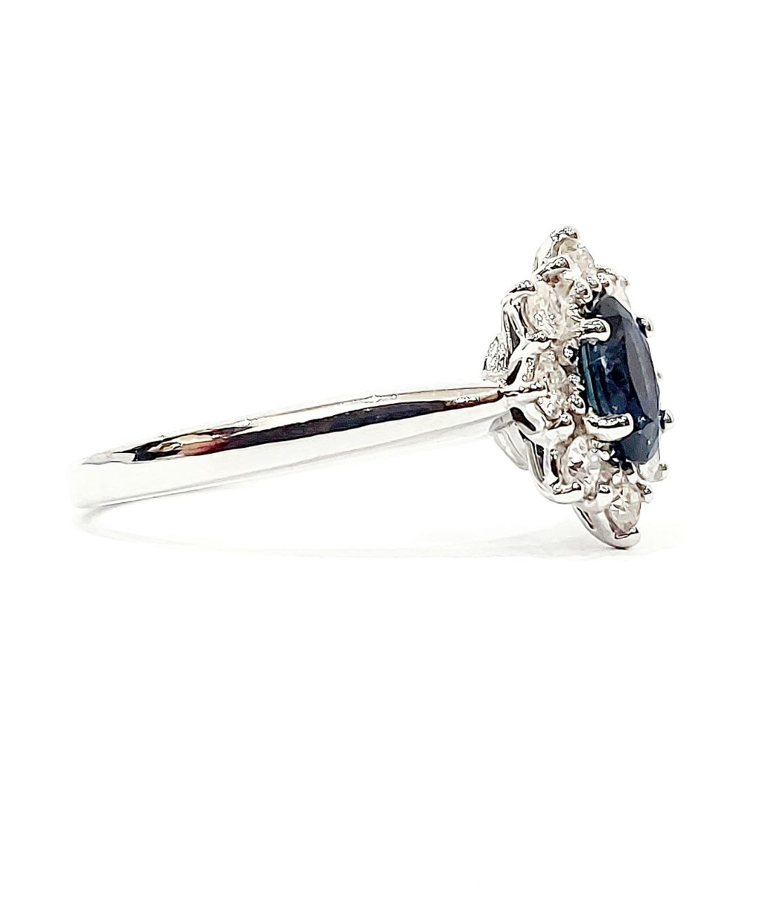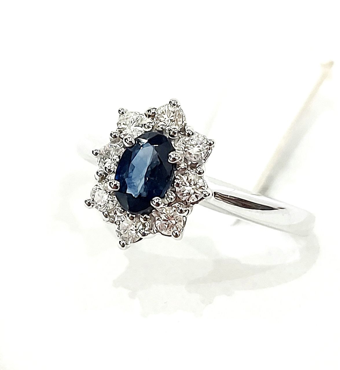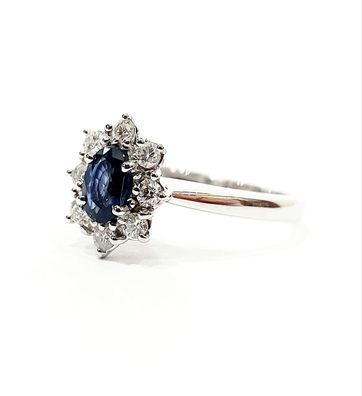 Anello fantasia Astralia con Zaffiro 0,75 ct e contorno di Diamanti 0,40 ct in Oro Bianco 18kt (750)