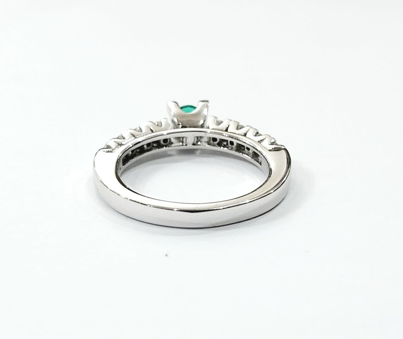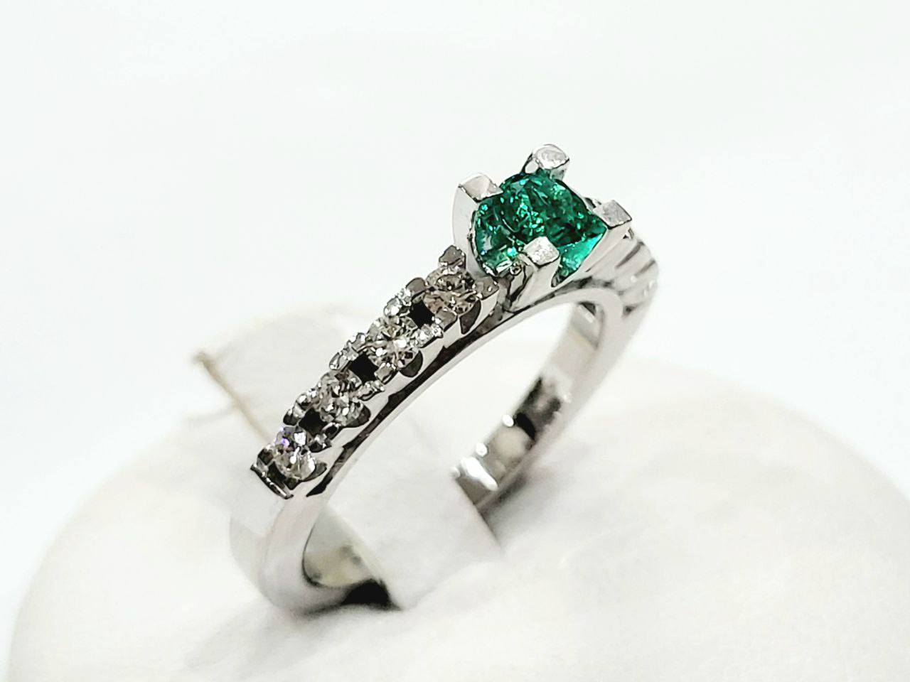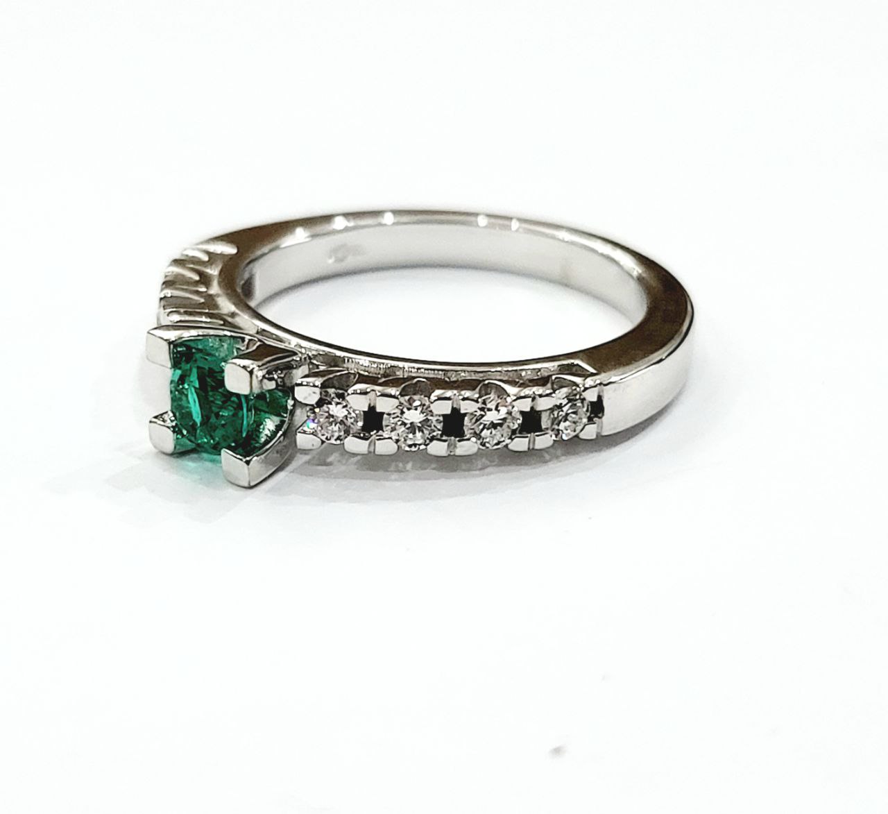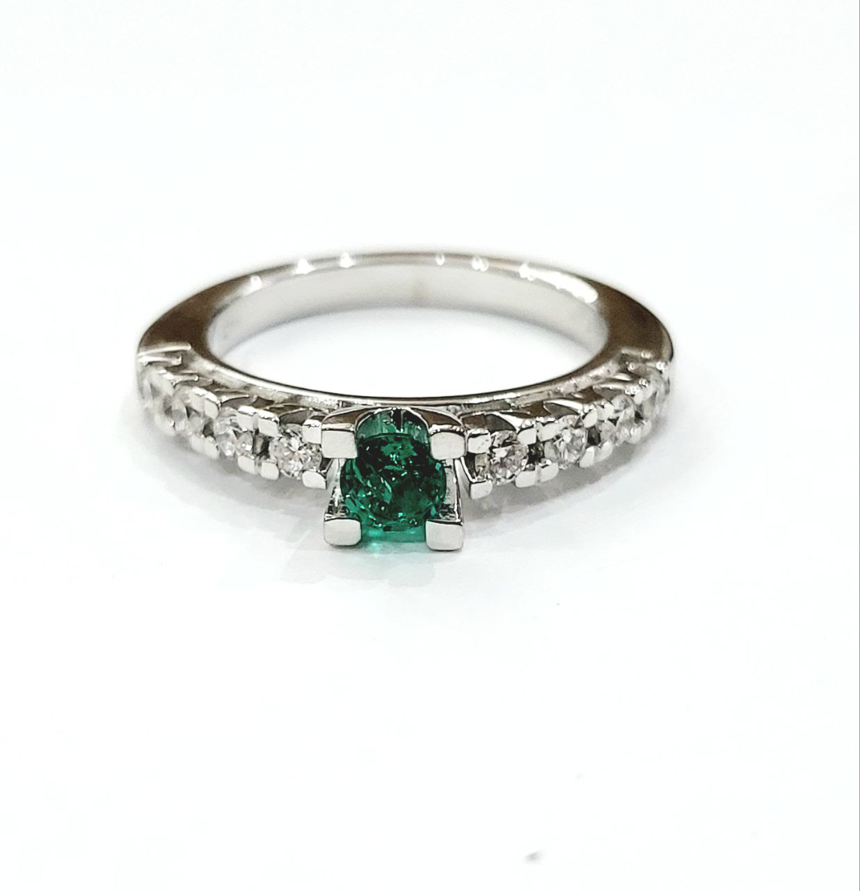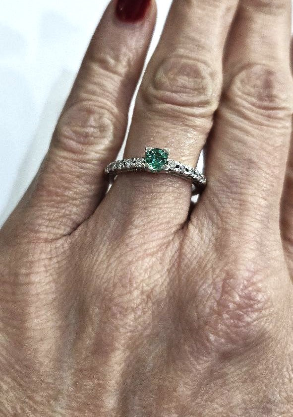 Anello con Smeraldo centrale e Diamanti taglio brillante lavorato in Oro Bianco – 18kt (750)