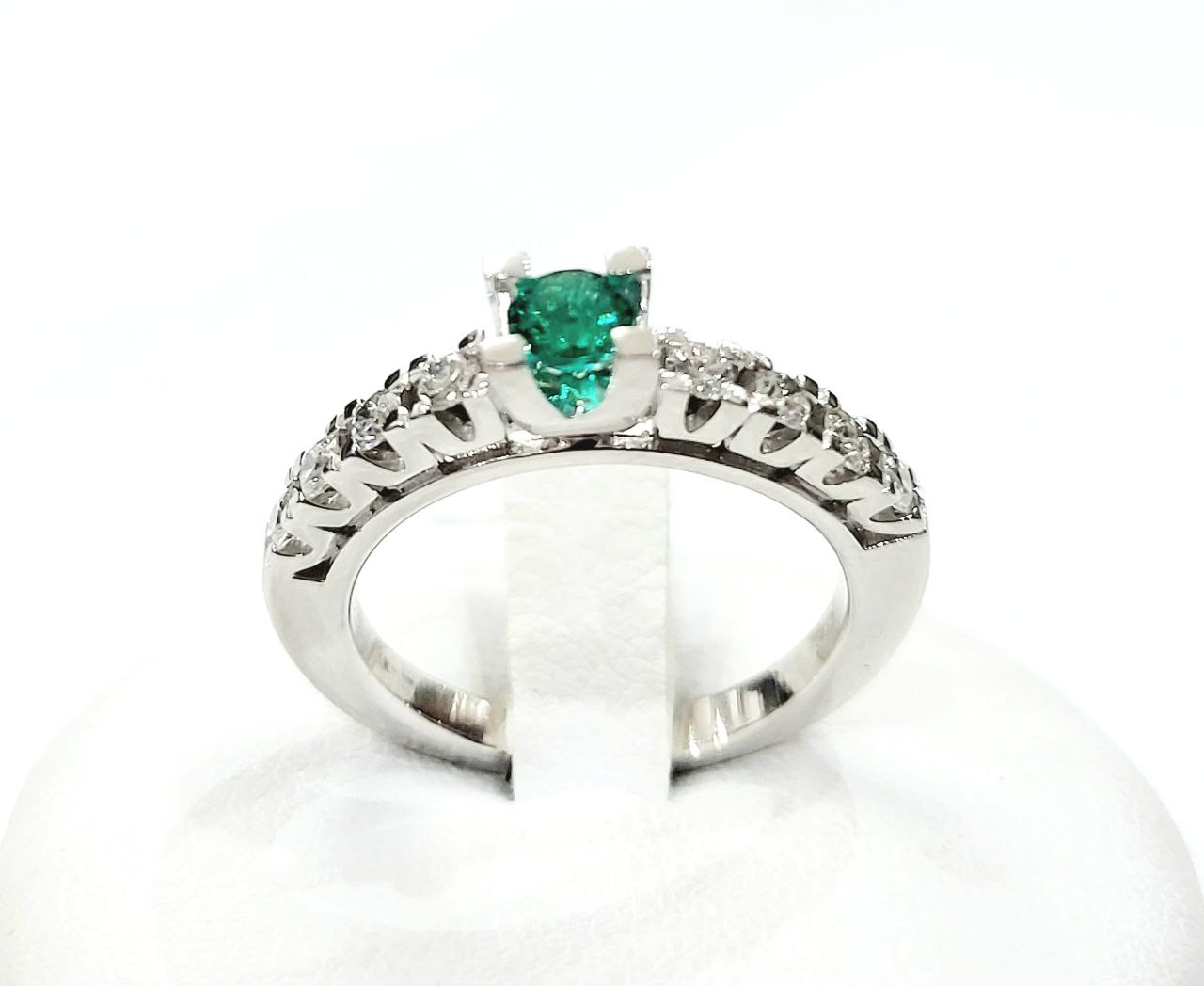 Anello Fantasia con Smeraldo ct 0,35 e Diamanti ct 0,40 in Oro Bianco 18 Kt (750)