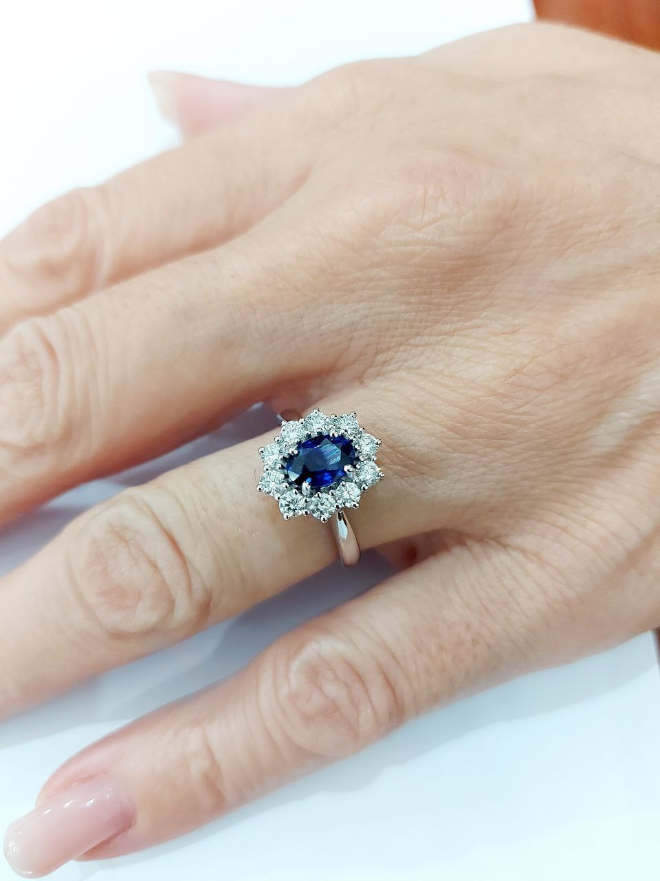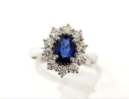 Anello Kate Lady fantasia Zaffiro ovale diamante brillante oro bianco 18 kt 750 donna sapphire Tramontano