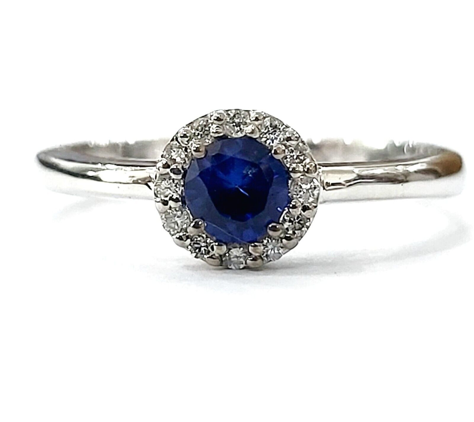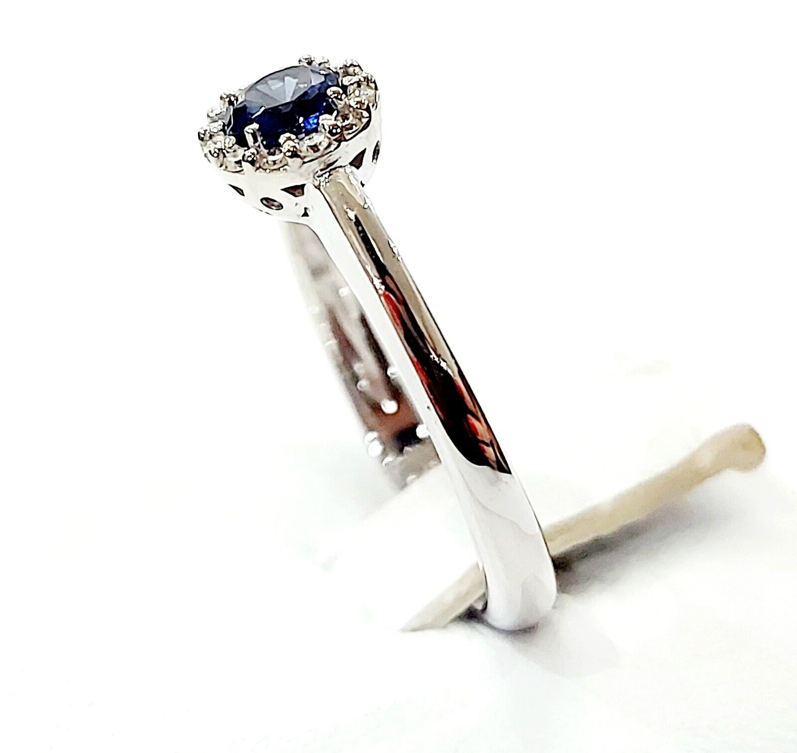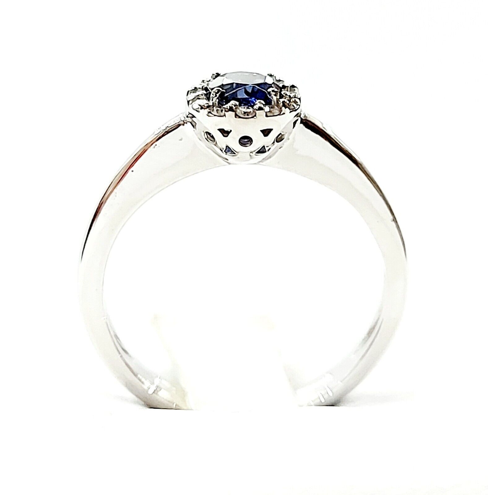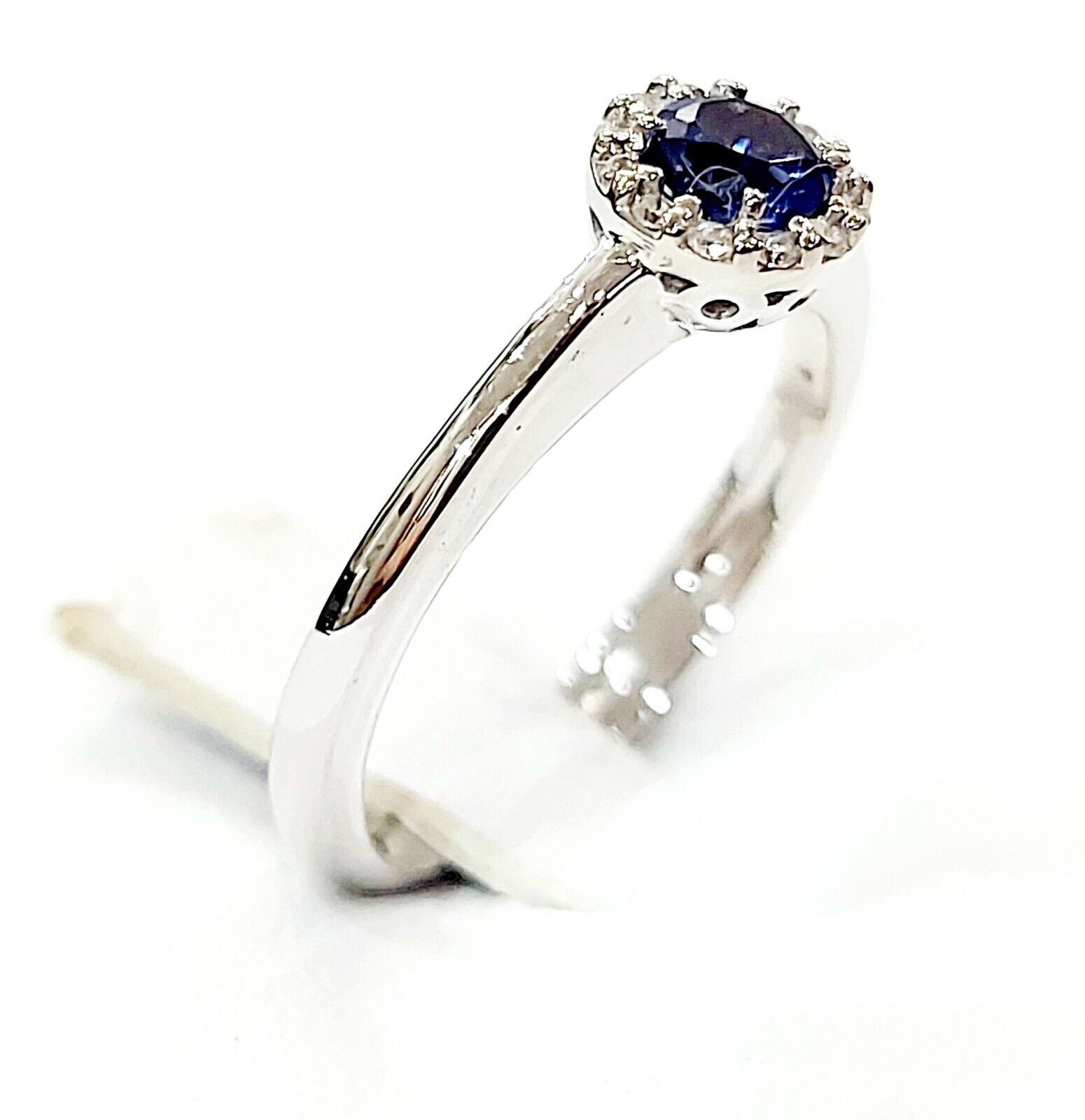 Anello fantasia con Zaffiro 0,30 ct e un giro di Diamanti 0,18 ct in Oro Bianco 18 kt ( 750 ) 2,80 gr