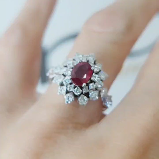 Anello modello Kate Astralia con Rubino centrale 0,85 ct Diamanti ct 0,80 Oro Bianco 18kt-750