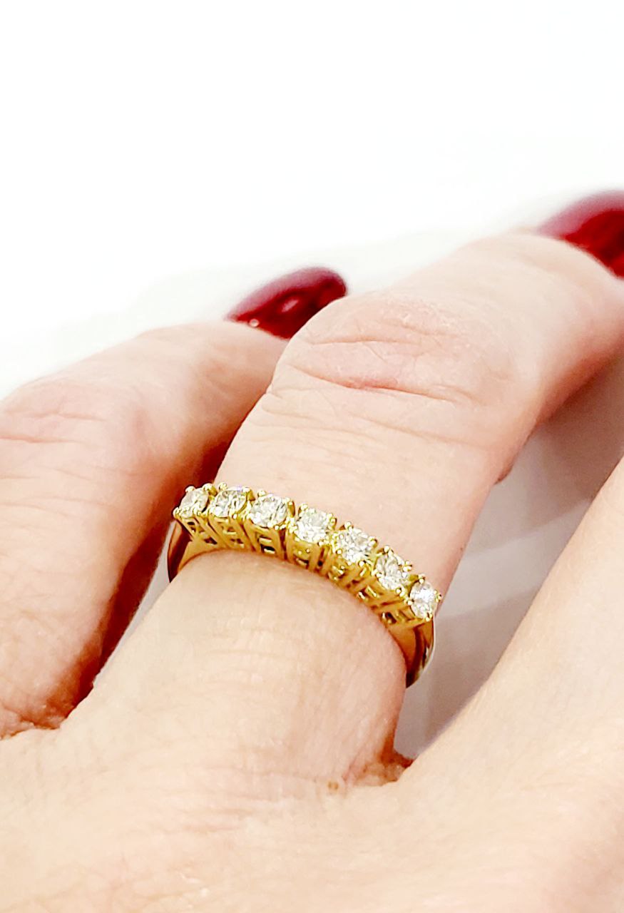 Anello modello riviera con 7 Diamanti taglio brillante 0,45 ct in Oro Giallo -18 kt -750