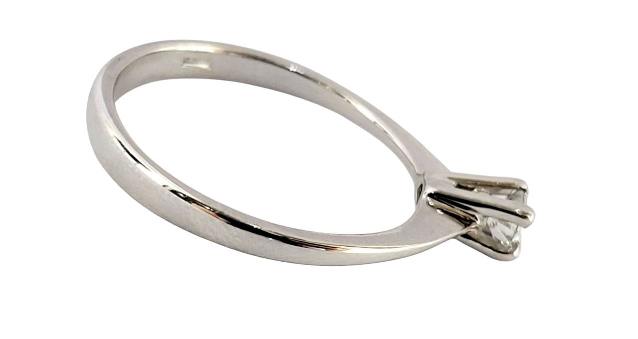 Anello Solitario modello Tiffany con Diamante ct 0,10 incastonato in 4 griffe lavorato in Oro Bianco 18kt-750 - con certificato gemmologico