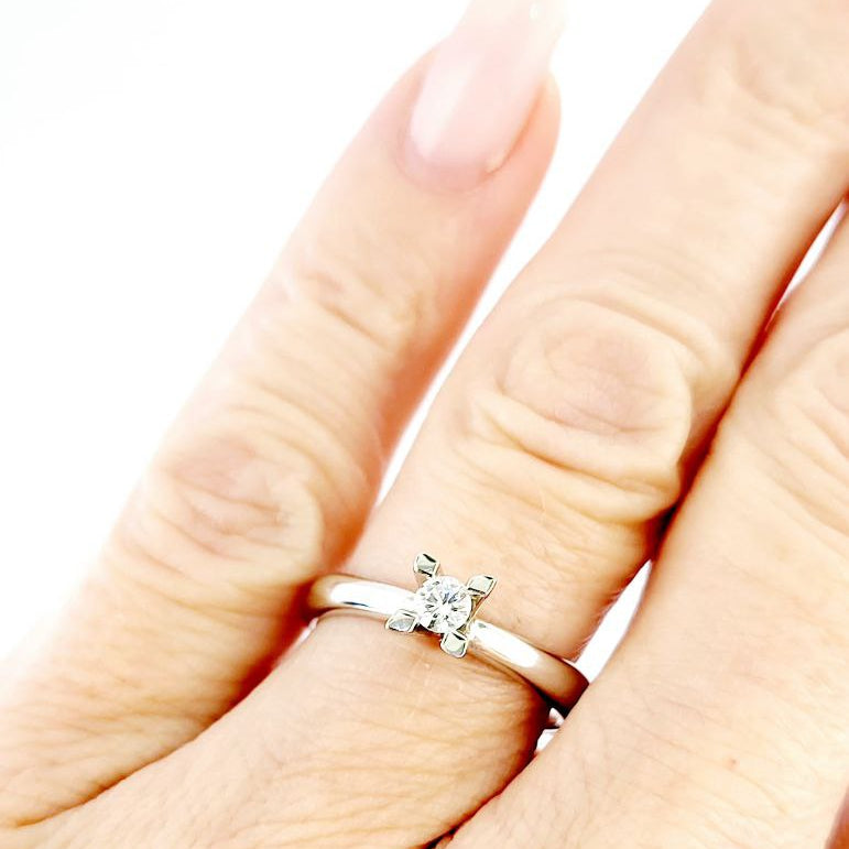 Anello Solitario modello Tiffany con Diamante ct 0,20 incastonato in 4 griffe lavorato in Oro Bianco 18kt-750 - con certificato gemmologico