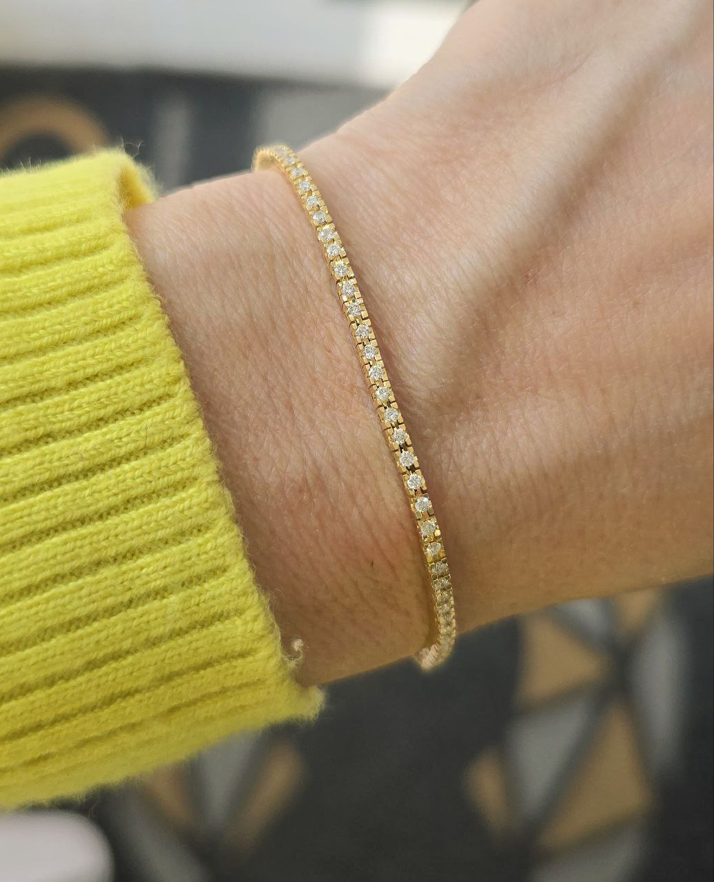 Bracciale modello tennis lavorato in oro giallo 18kt 750/1000 incastonato con diamanti bianchi ct 1,10 - Grammi 8,80 - 19 cm