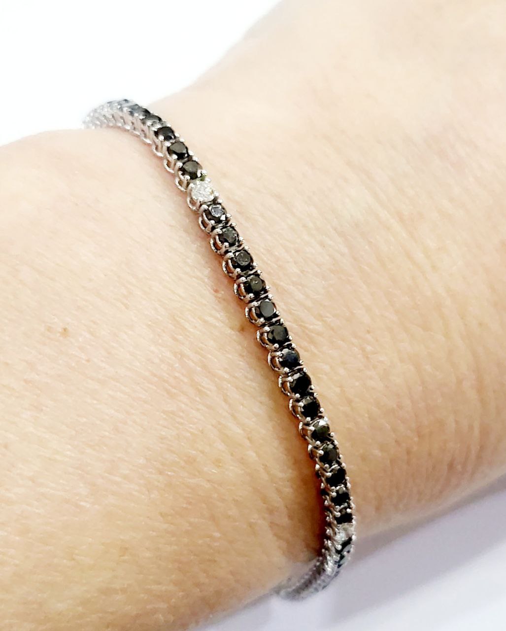 Bracciale modello Tennis Oro Bianco 18kt-750 Diamanti Neri ct 4,34 Diamanti Bianchi ct 0,27