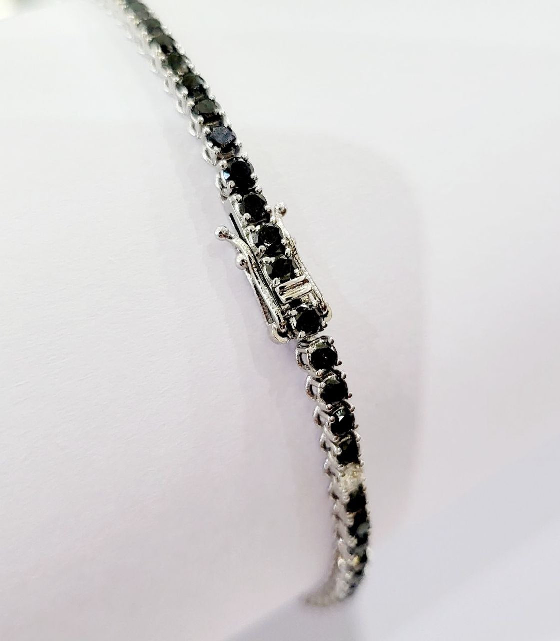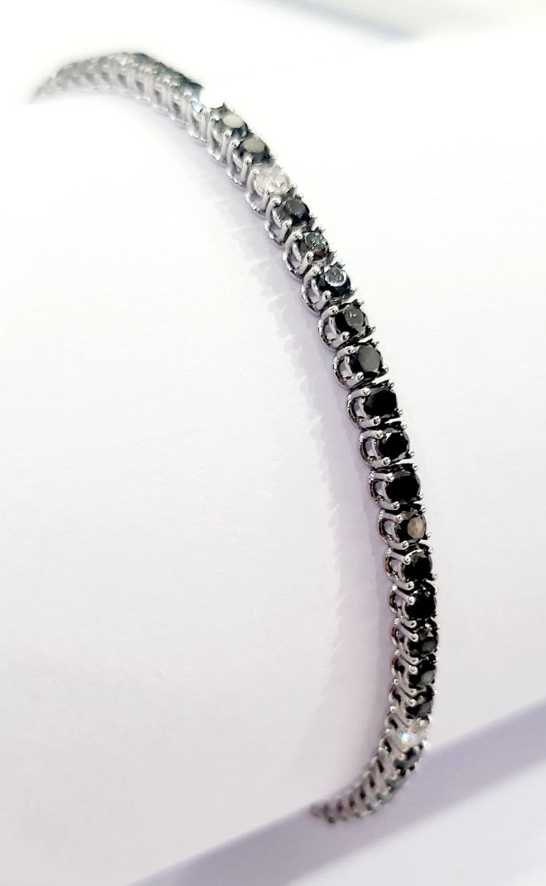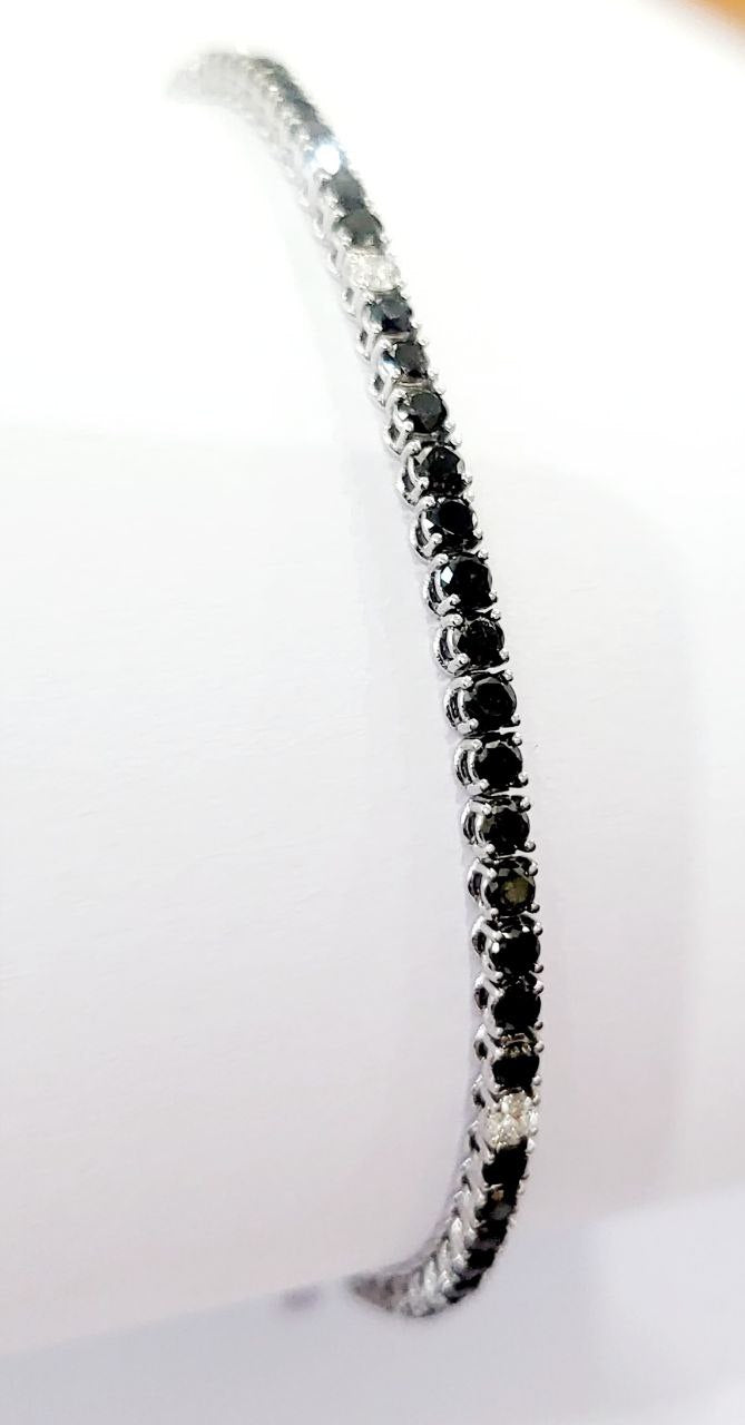 Bracciale modello tennis filo tondo Unisex lavorato in Oro bianco 18kt-750 -Grammi circa 8,70 incastonato con Diamanti Neri ct 4,34 e Diamanti Bianchi ct 0,27 con - 21 cm