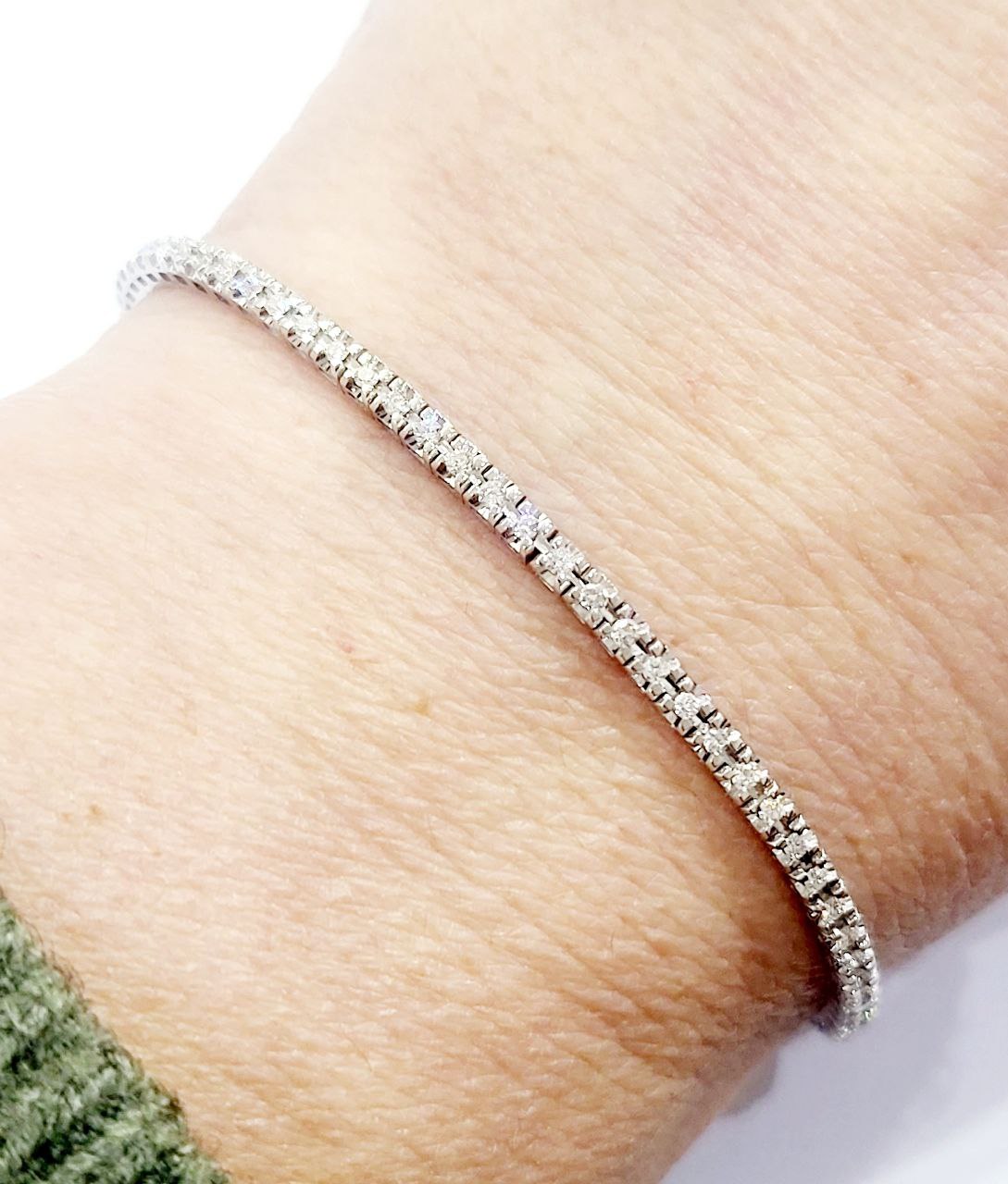 Bracciale modello tennis modello piramidale lavorato in oro Bianco 18kt 750/1000 incastonato con diamanti bianchi ct 0,91- Grammi 7,60 - cm