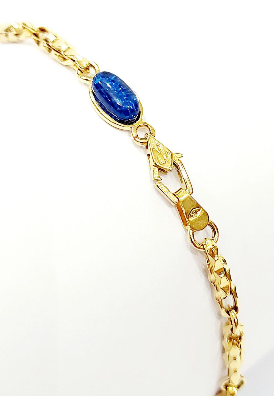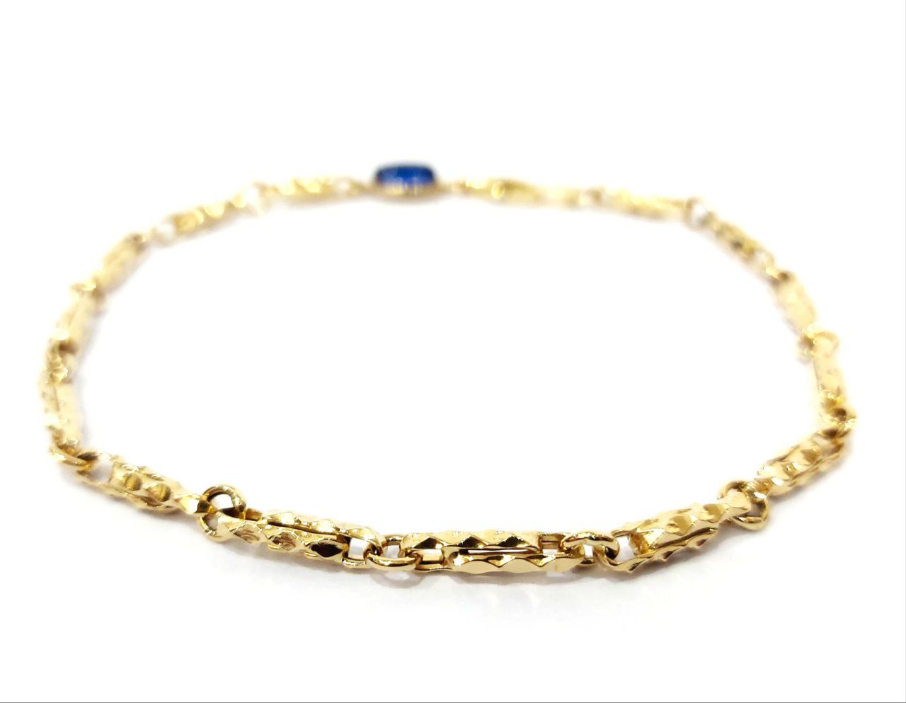 Bracciale modello maglia bamboo tubolare a catena lucido lavorato in Oro Giallo con lapislazzulo - 18 kt - 750