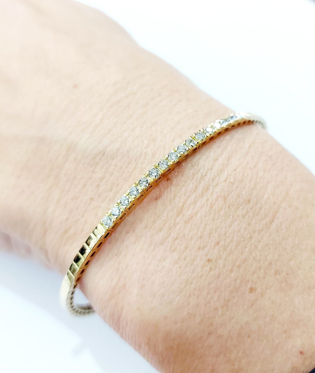 Bracciale rigido semi tennis a molla Astralia lavorato in Oro Giallo 18kt (750) con Diamanti 0,80 ct – Grammi 9,00