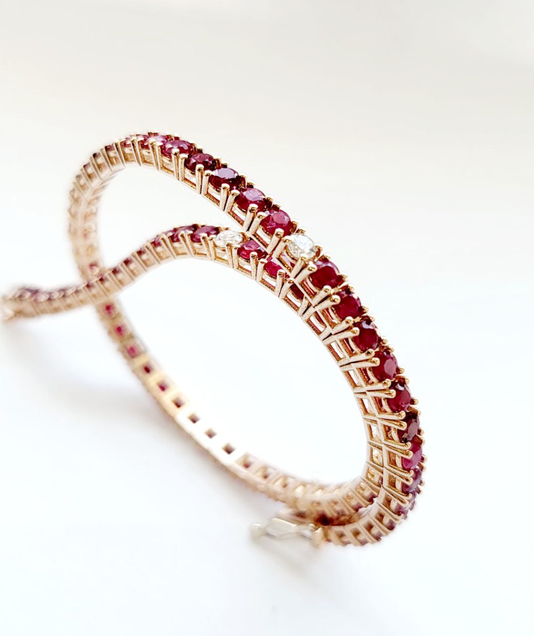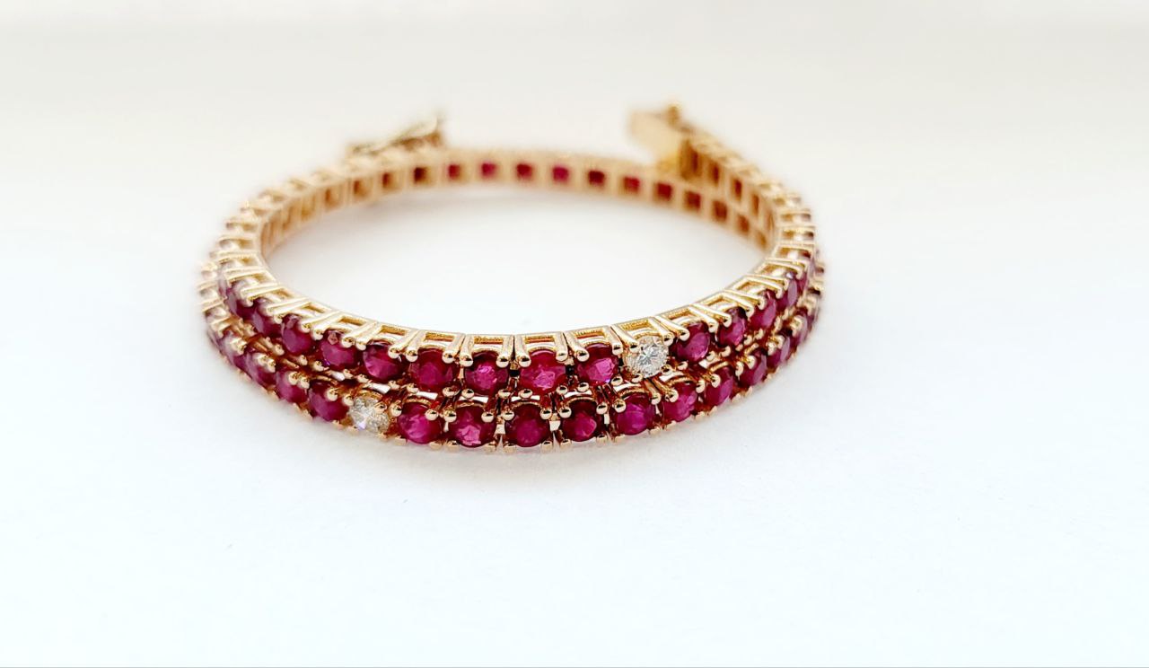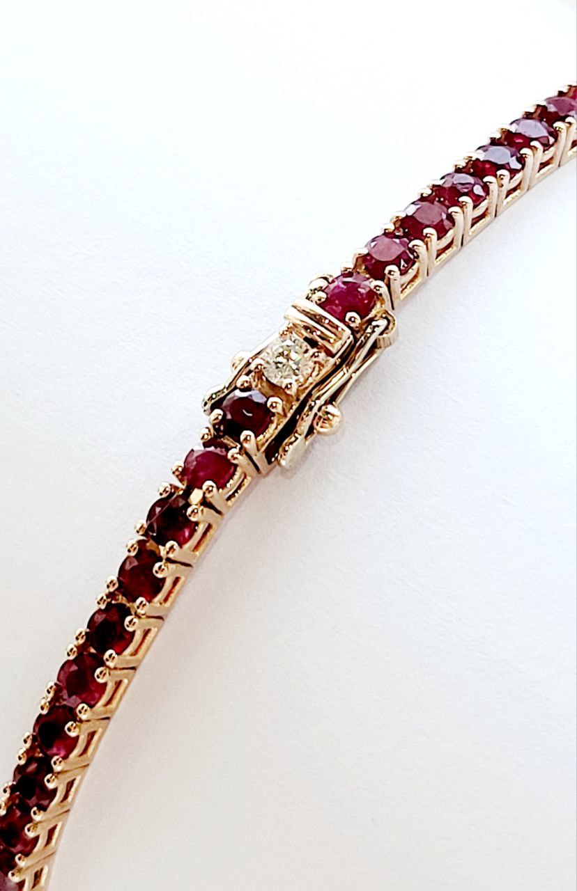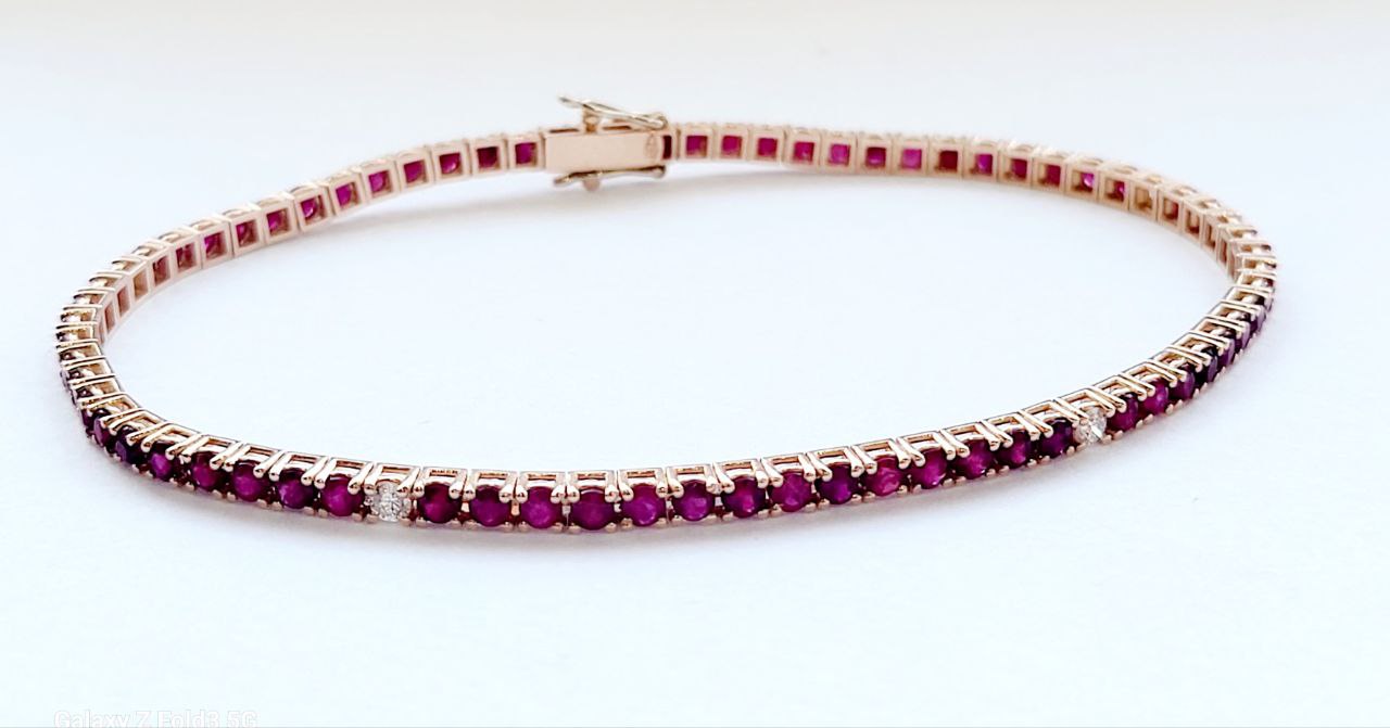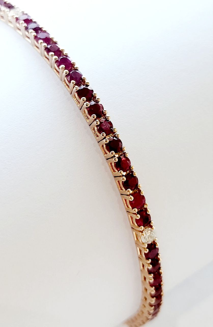 Bracciale Tennis a filo in Oro Rosa con Rubino 5,08 ct e Diamanti 0,35 ct 18kt (750)