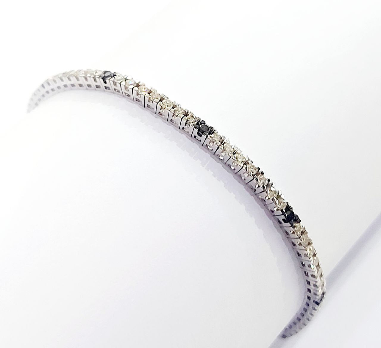Bracciale modello tennis lavorato in Oro bianco 18kt-750 Grammi 7,74 incastonato con Diamanti Bianchi  ct 2,15  e Diamanti Neri ct 0,27 -18,50 cm
