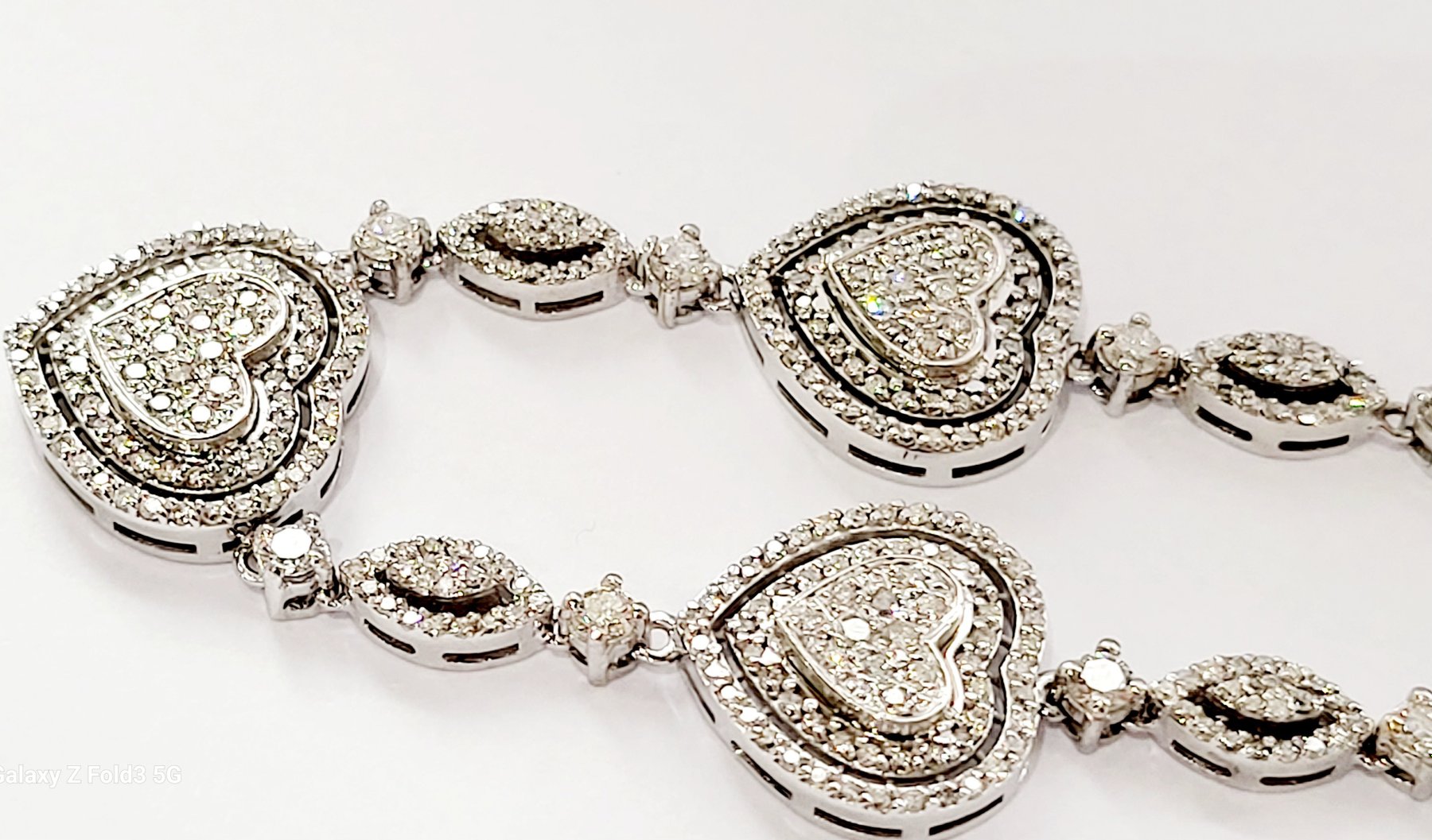 Collana collier da Donna linea esclusiva del made in Italy con pendenti a forma di cuore firmato Tramontano lavorato in Oro Bianco 18kt 750/1000 incastonato con Diamanti bianchi naturali con certificato Gemmologico GEM-TECH- Grammi 34,90