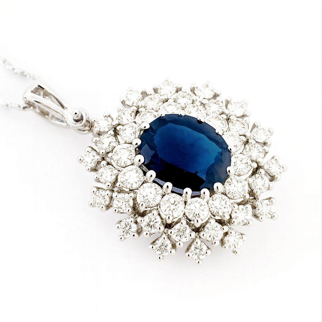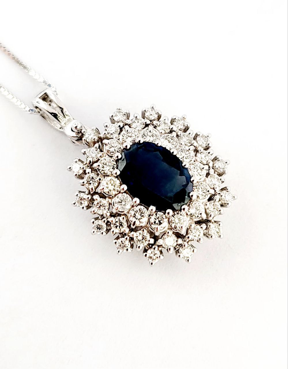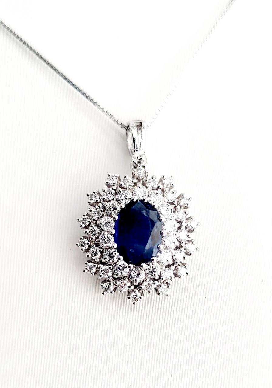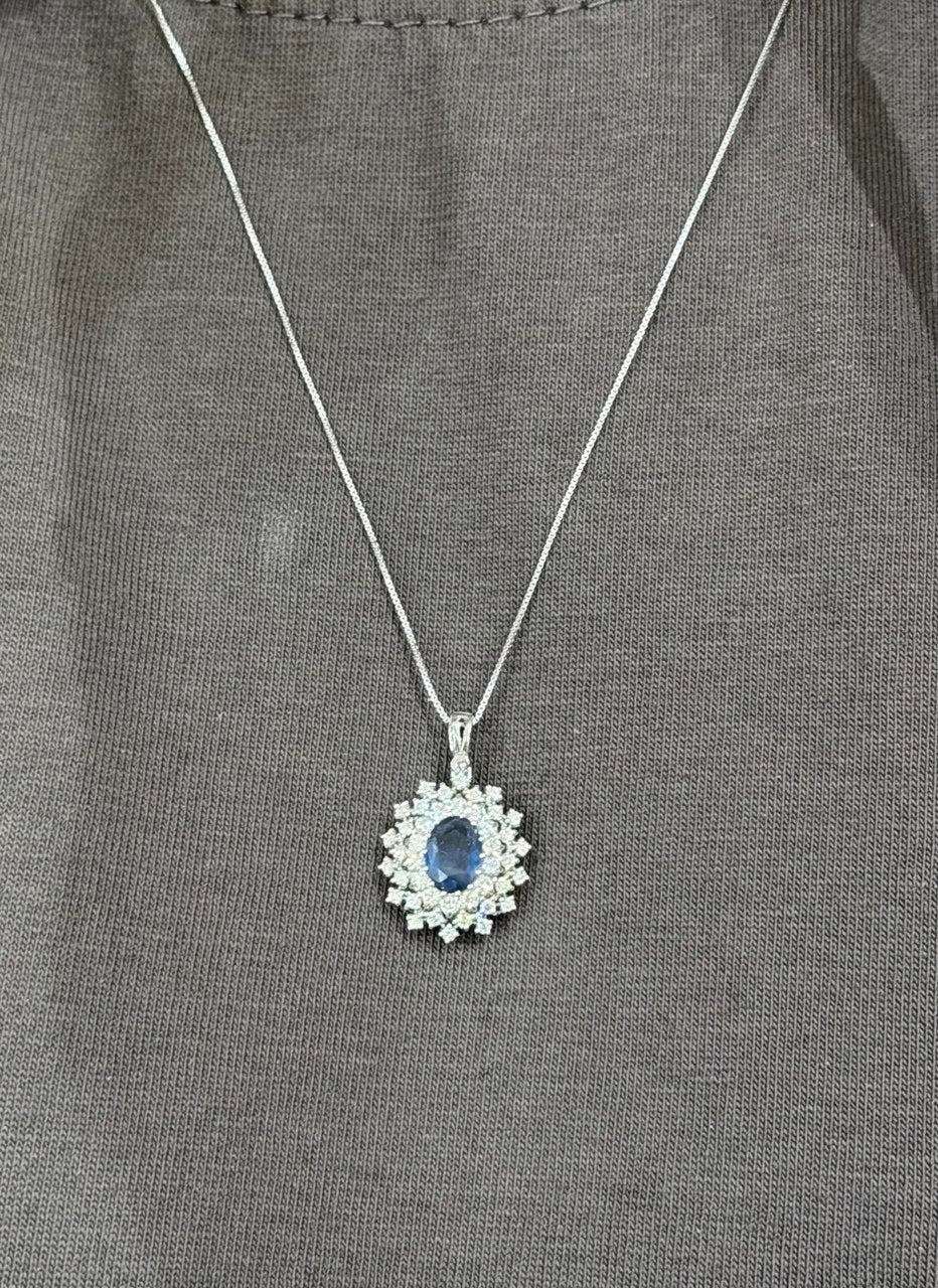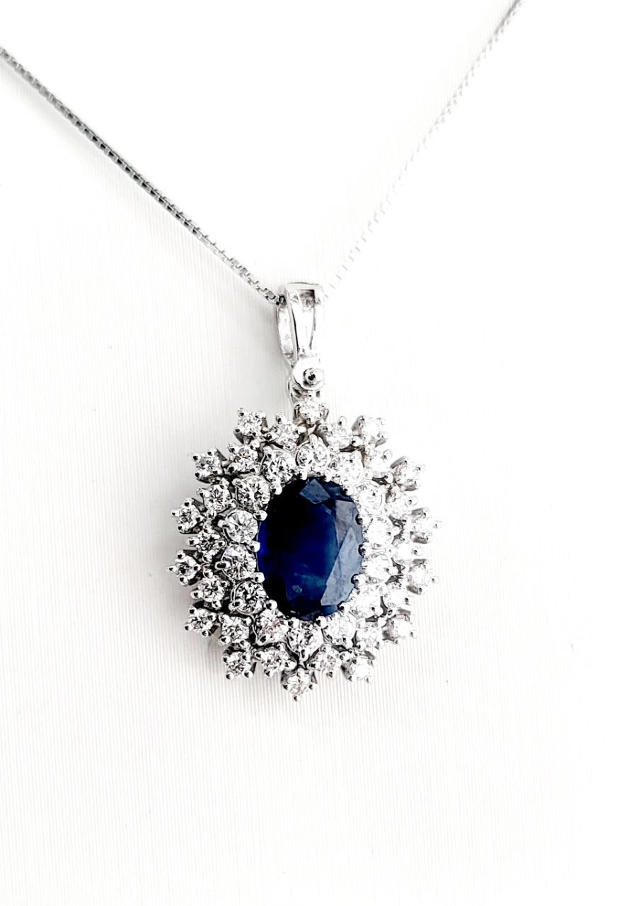 Collana pendente in oro bianco 18K con zaffiro Ovale ct 0,97 e Diamanti ct 0,45