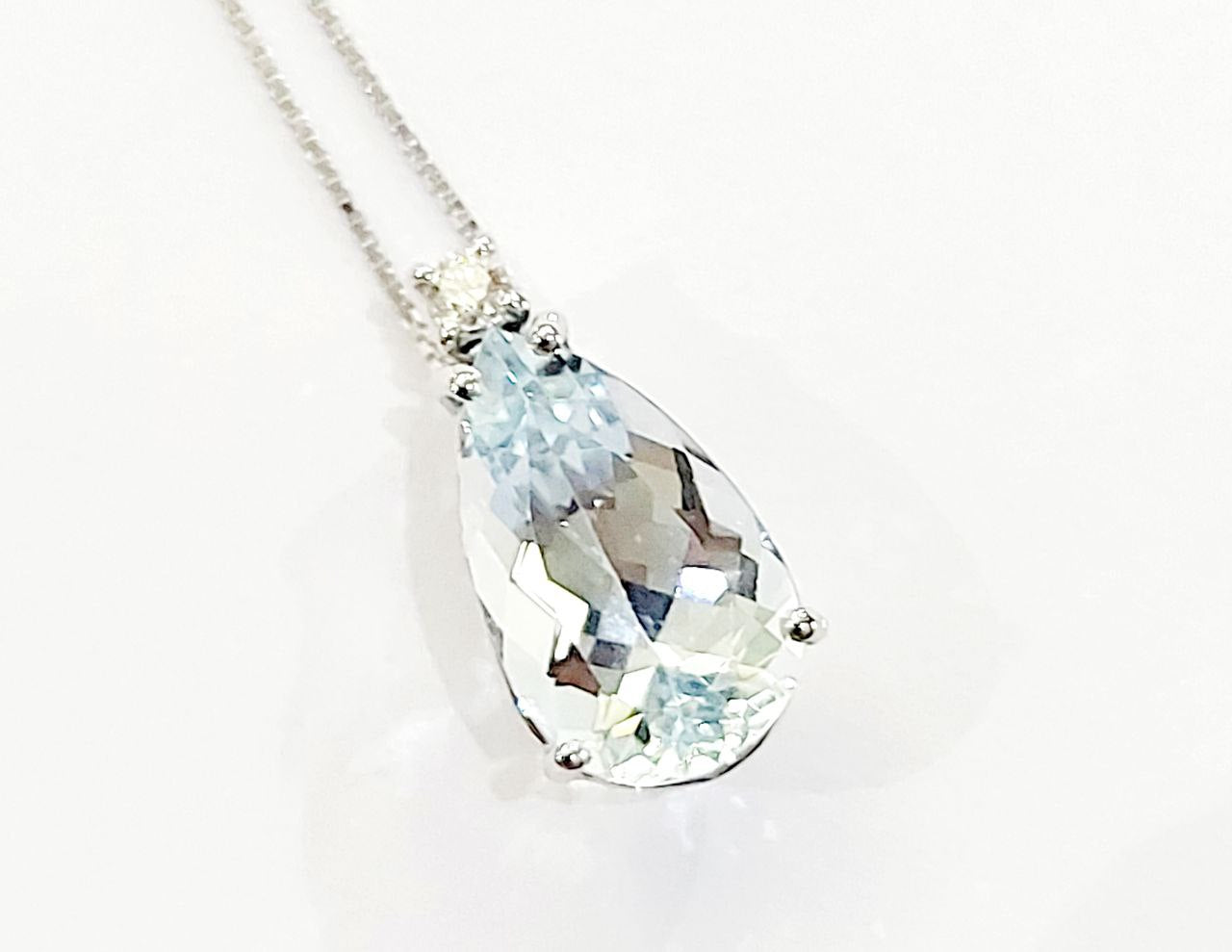 Collana con pendente in Oro Bianco 18kt -750 con Acquamarina taglio Goccia ct 3,12 e Diamante ct 0,09