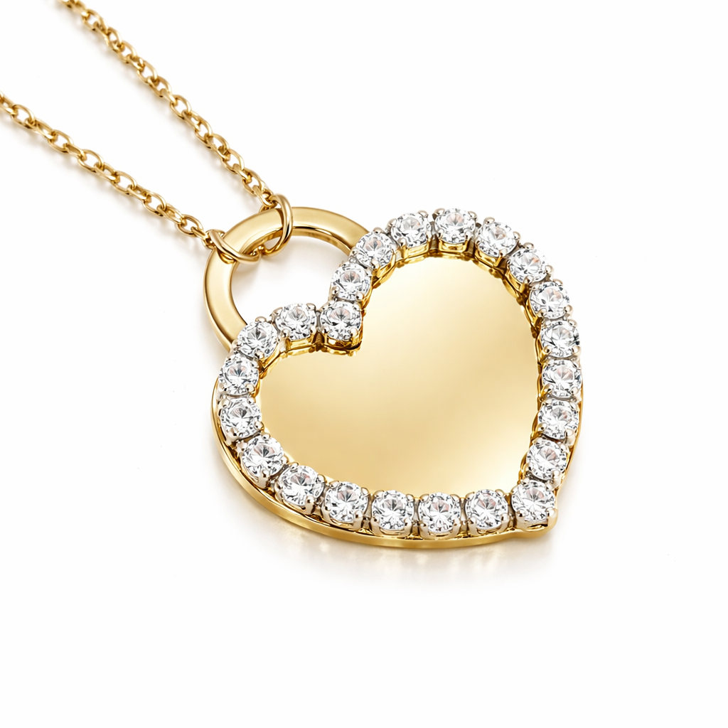 Collana cuore con zirconi in oro giallo 18kt (750) - 2.80gr - Oreficeria