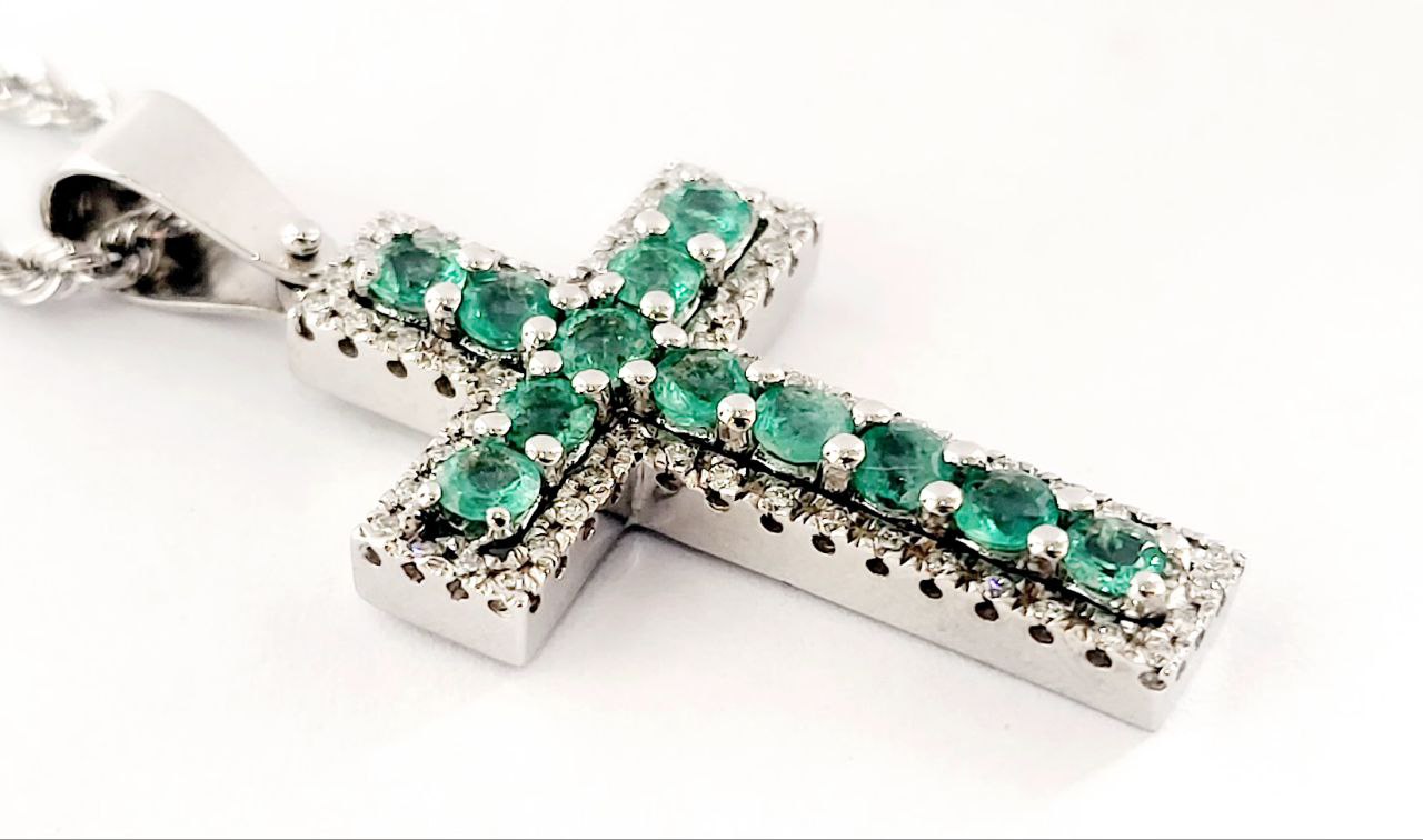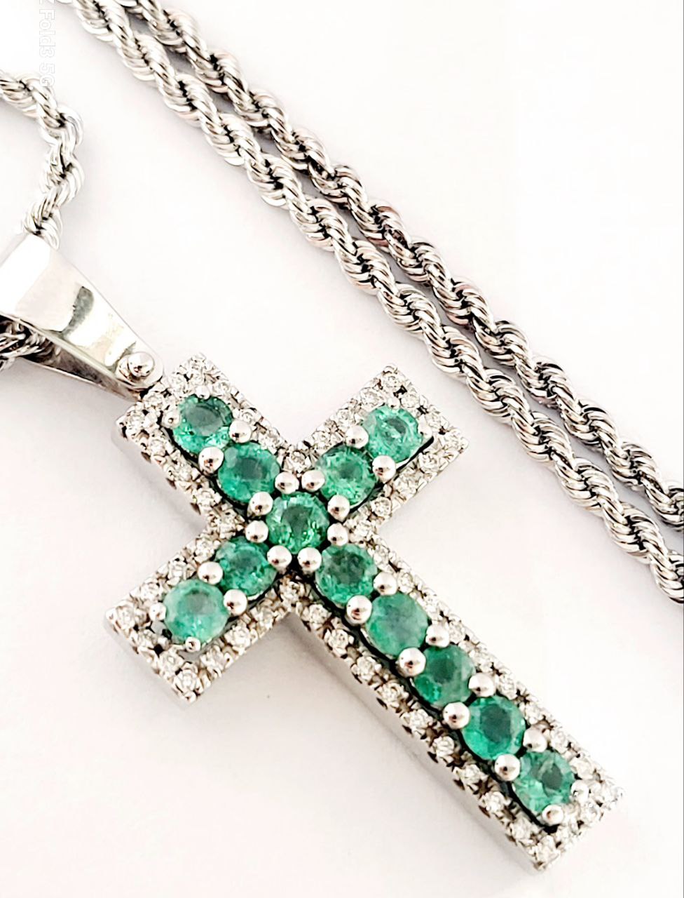 Collana e pendente croce in Oro Bianco con Smeraldi e Diamanti ct 1,45 Diamanti ct 0,50 18 kt ( 750 ) – 10,78 Grammi