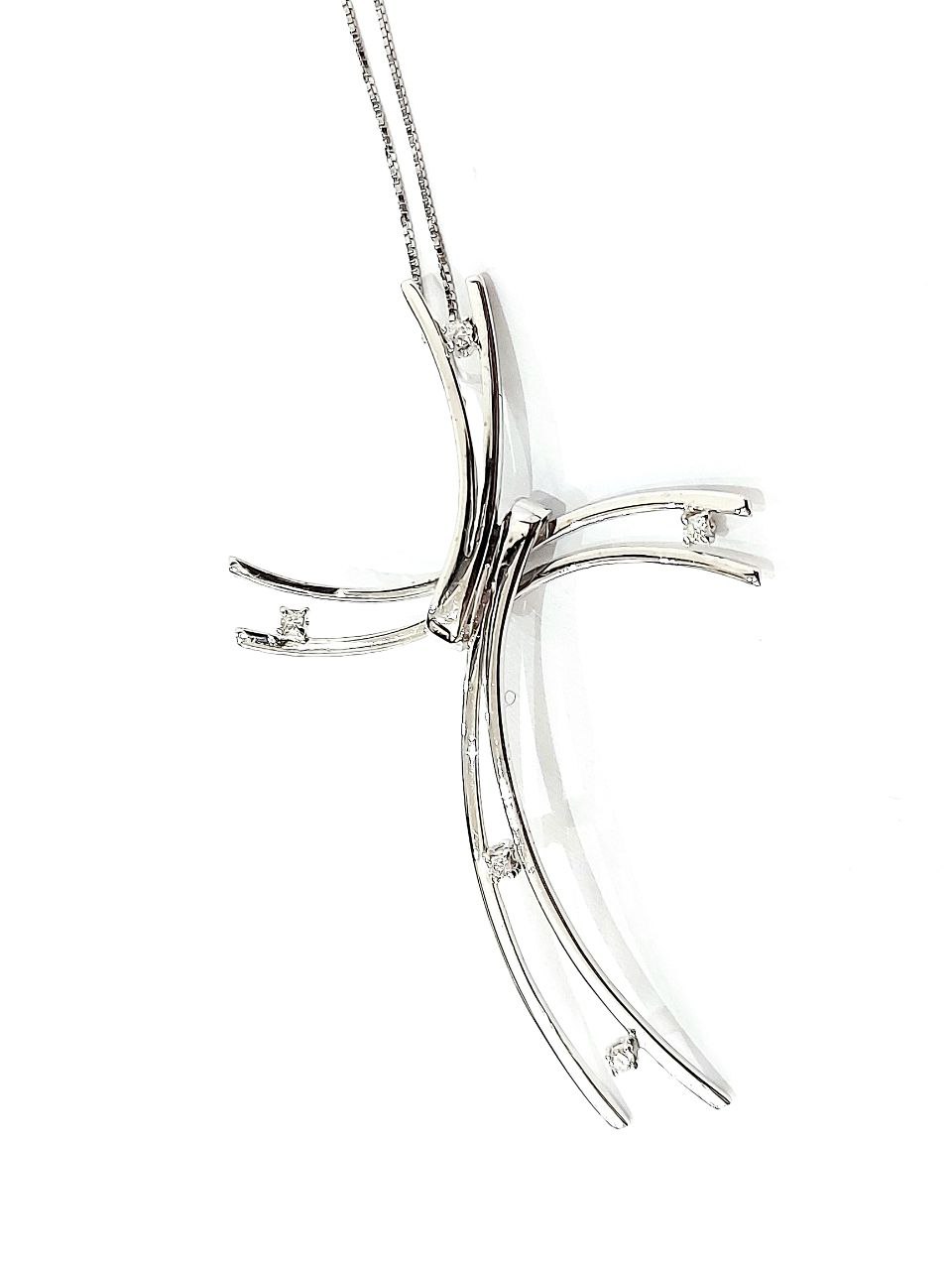 Collana e pendente croce con diamanti in Oro Bianco 4,7 gr – 0,10 Ct – 18kt – ( 750 )