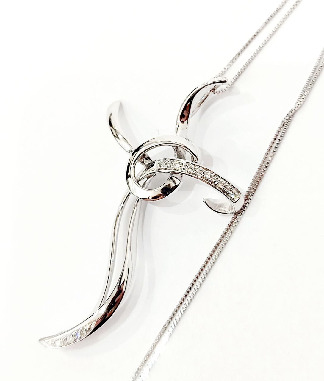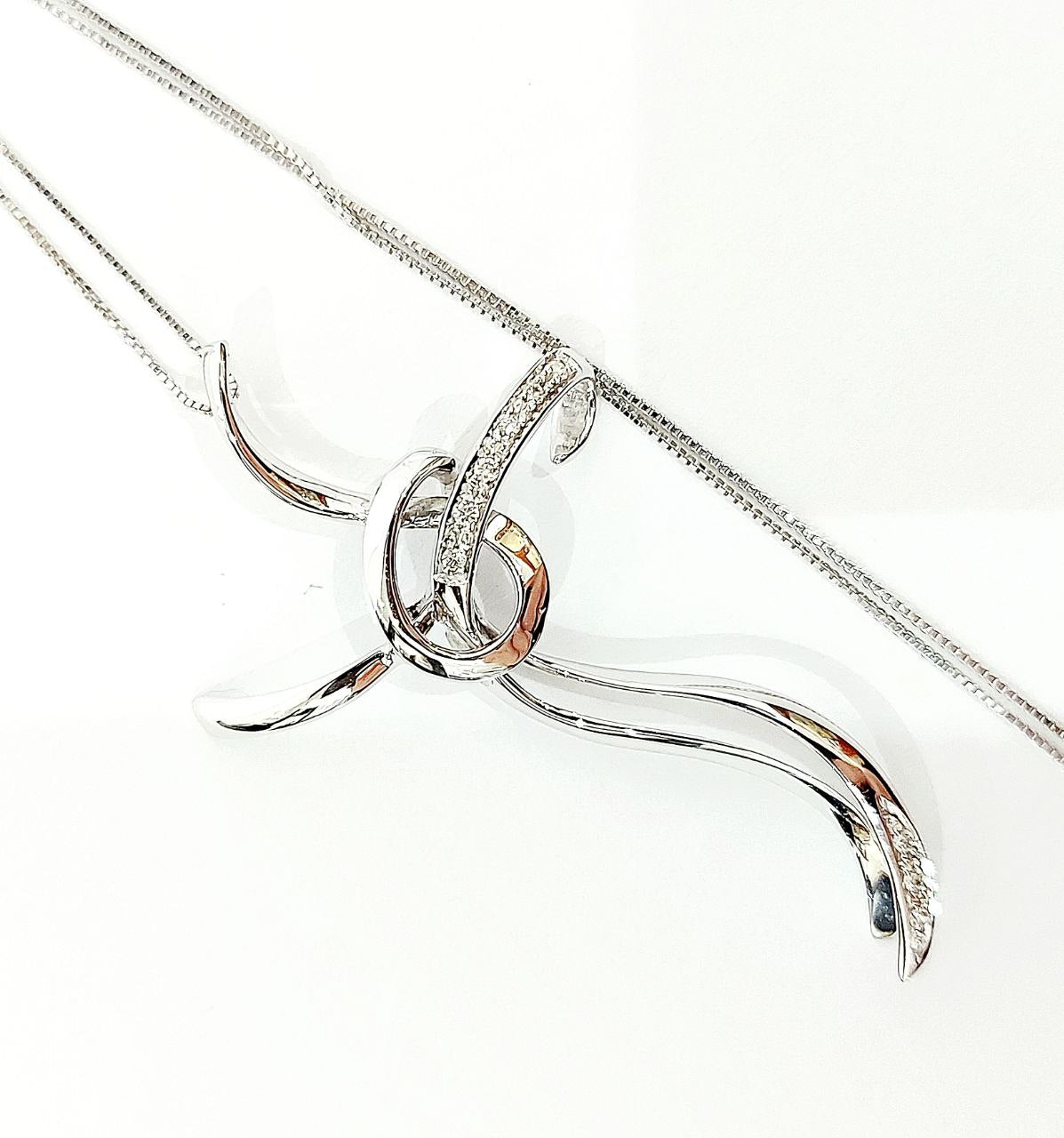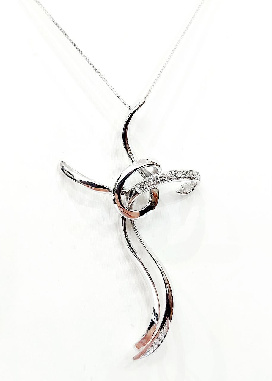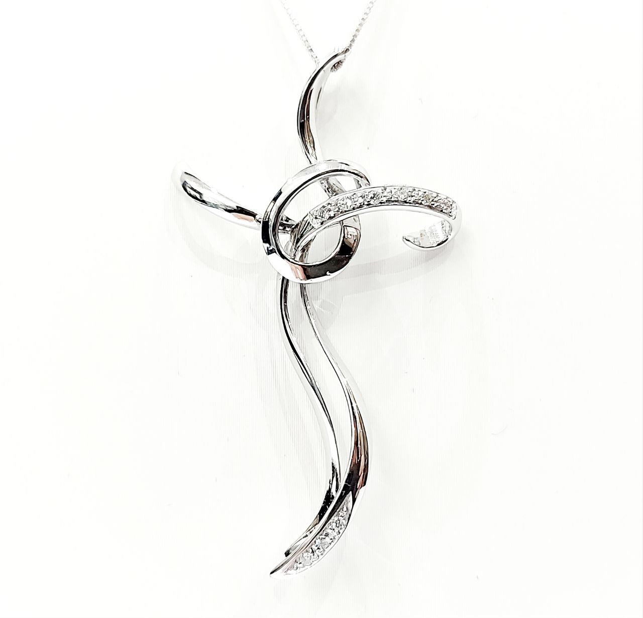 Collana e pendente croce con diamanti lavorata in Oro Bianco 4,30 gr – 0,05 Ct – 18kt – (750)