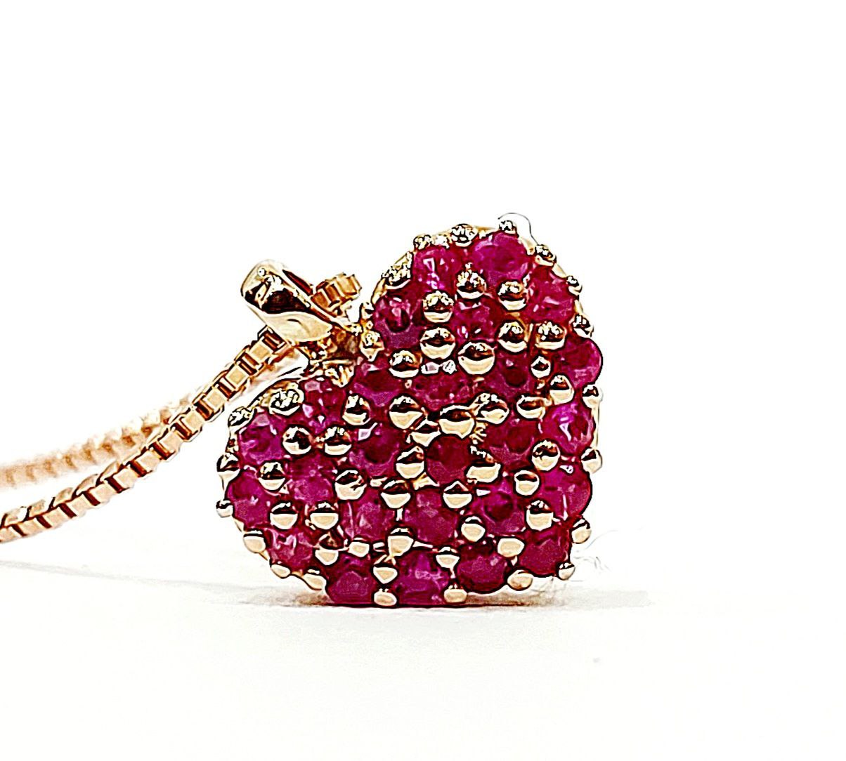 Collana e pendente cuore con Rubini 0,45 ct in Oro Rosa 18 Kt (750)
