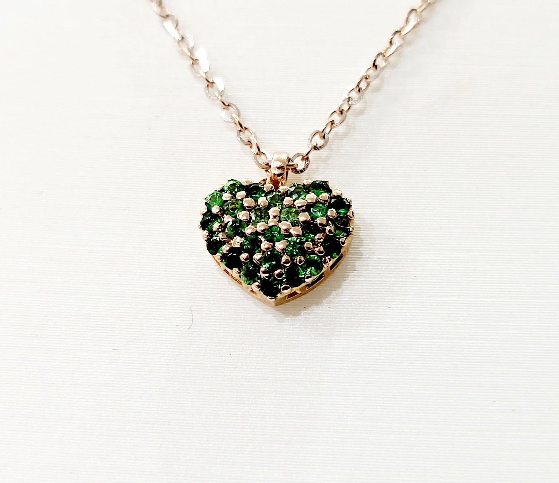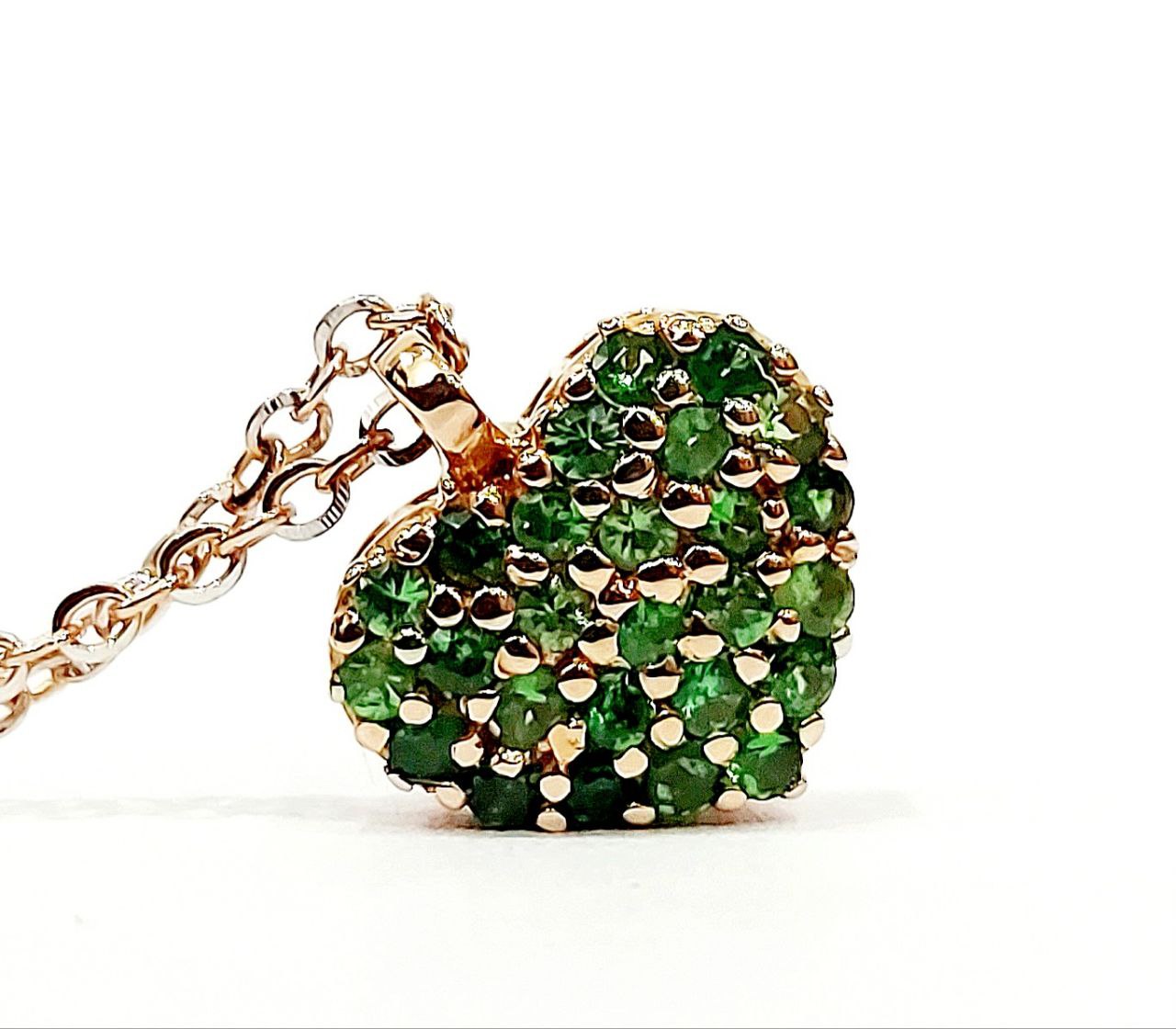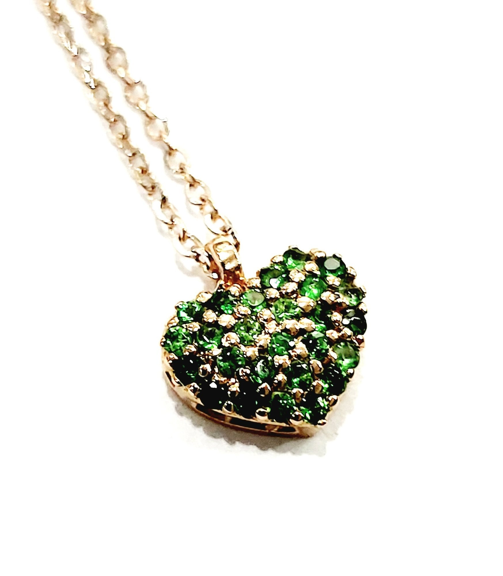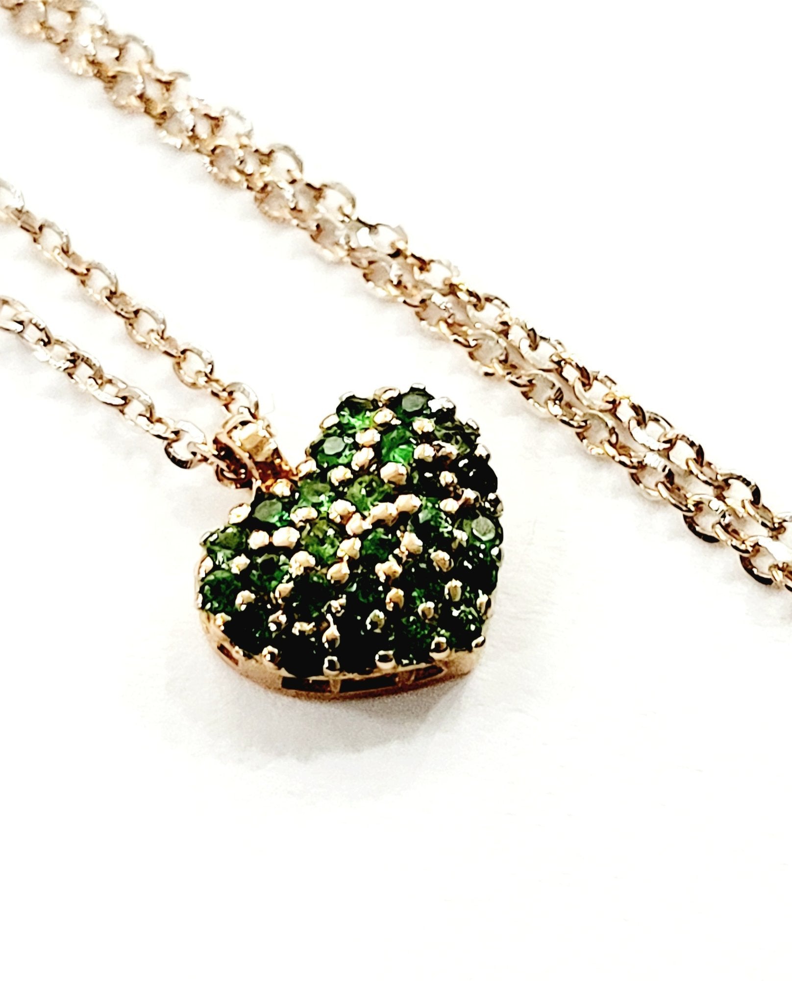 Collana con pendente cuore smeraldo e diamanti in lavorato in Oro Rosa di gr 3,05 – 18Kt – ( 750 )