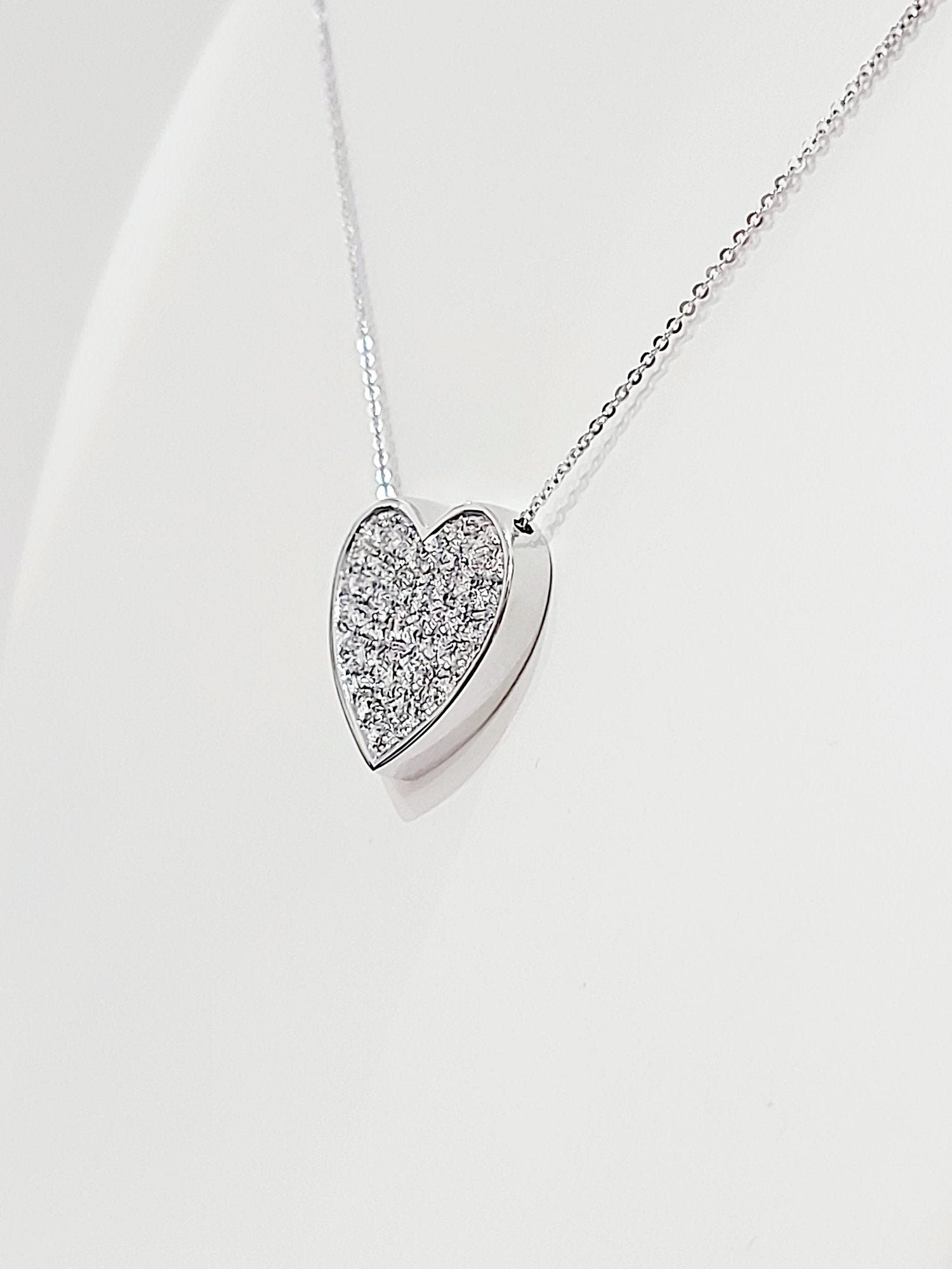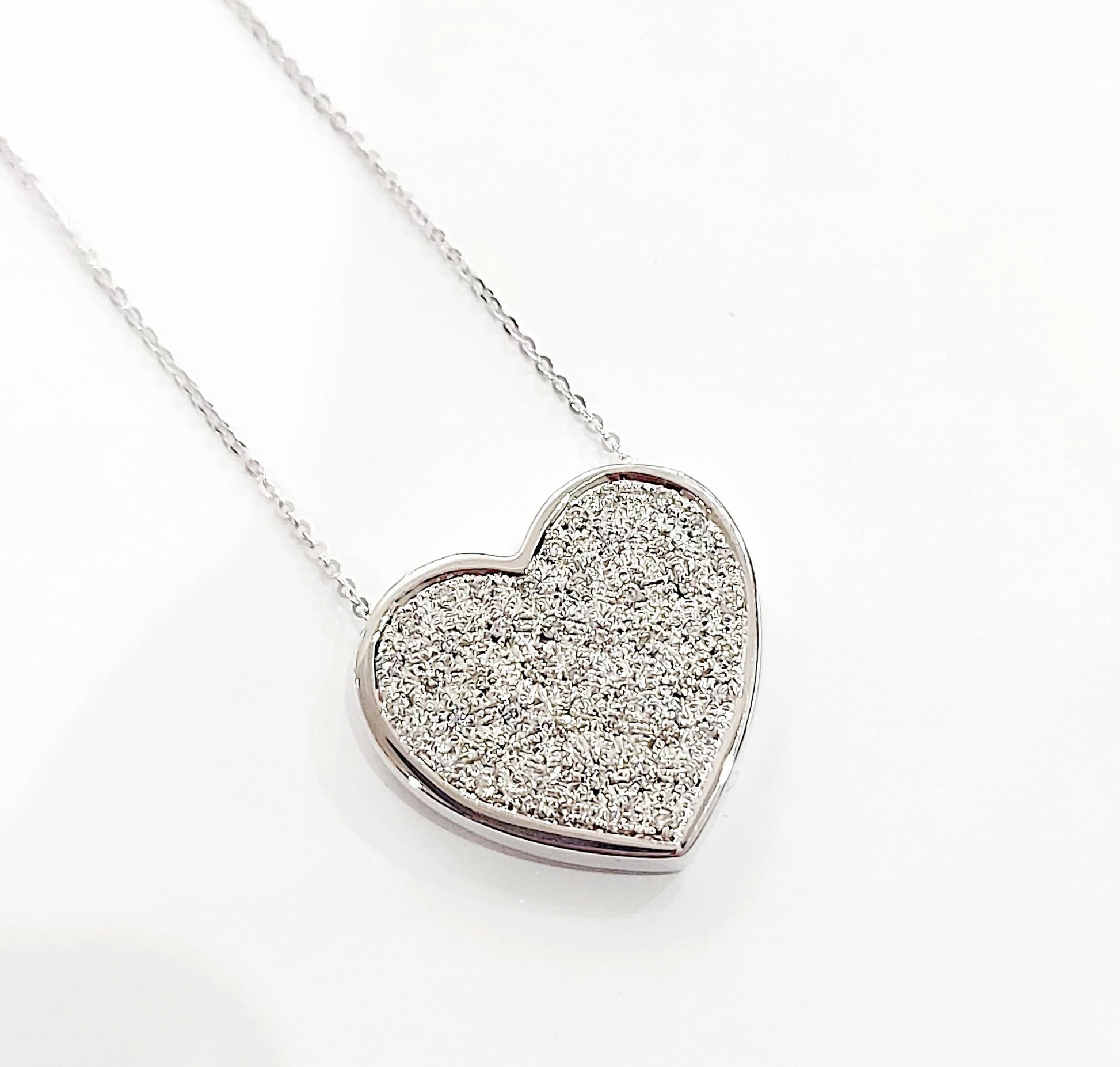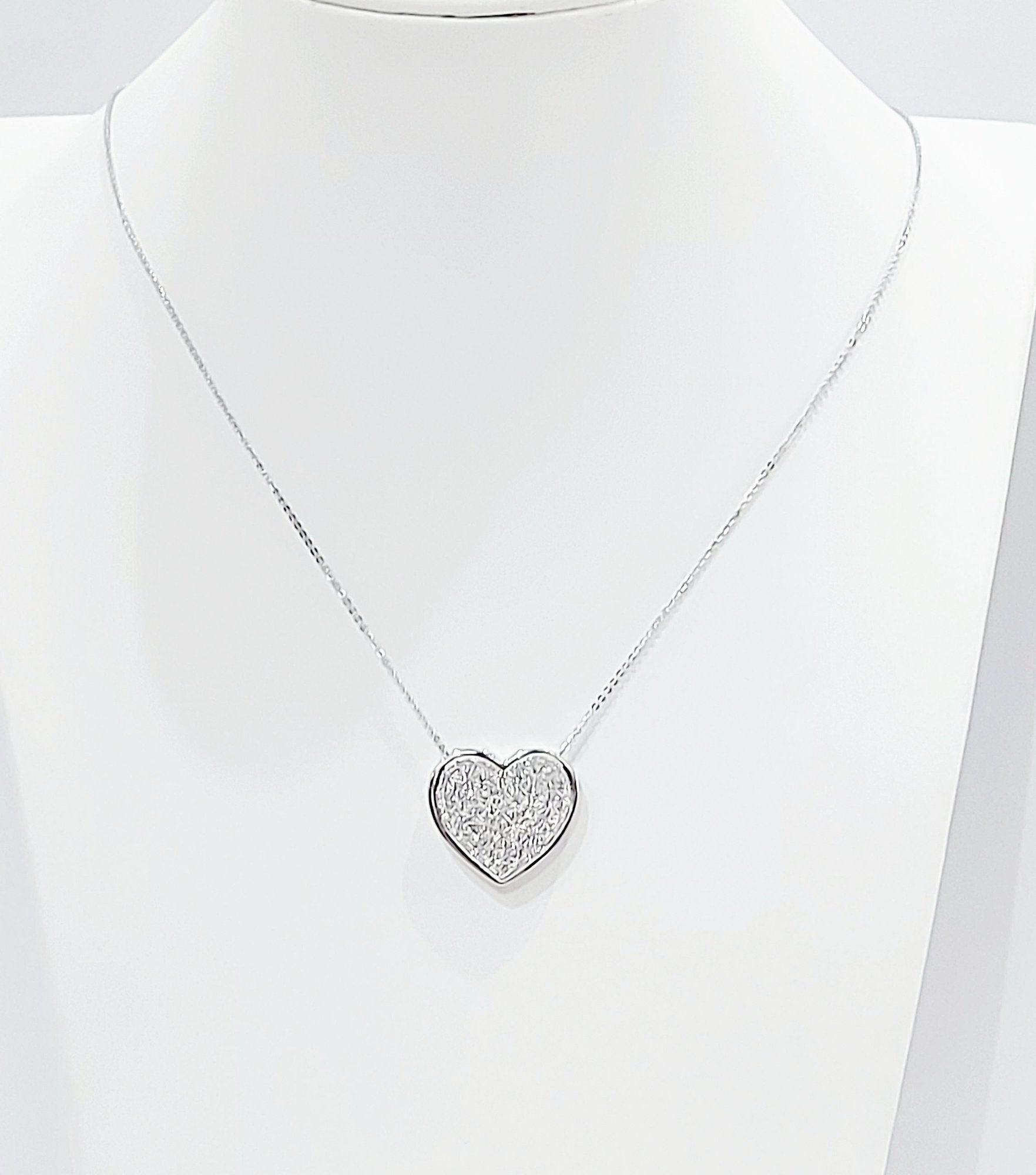 Collana con pendente cuore pave’ lavorato in oro bianco e diamanti ct 0,82 – gr 4,30 – 18 Kt – ( 750 )