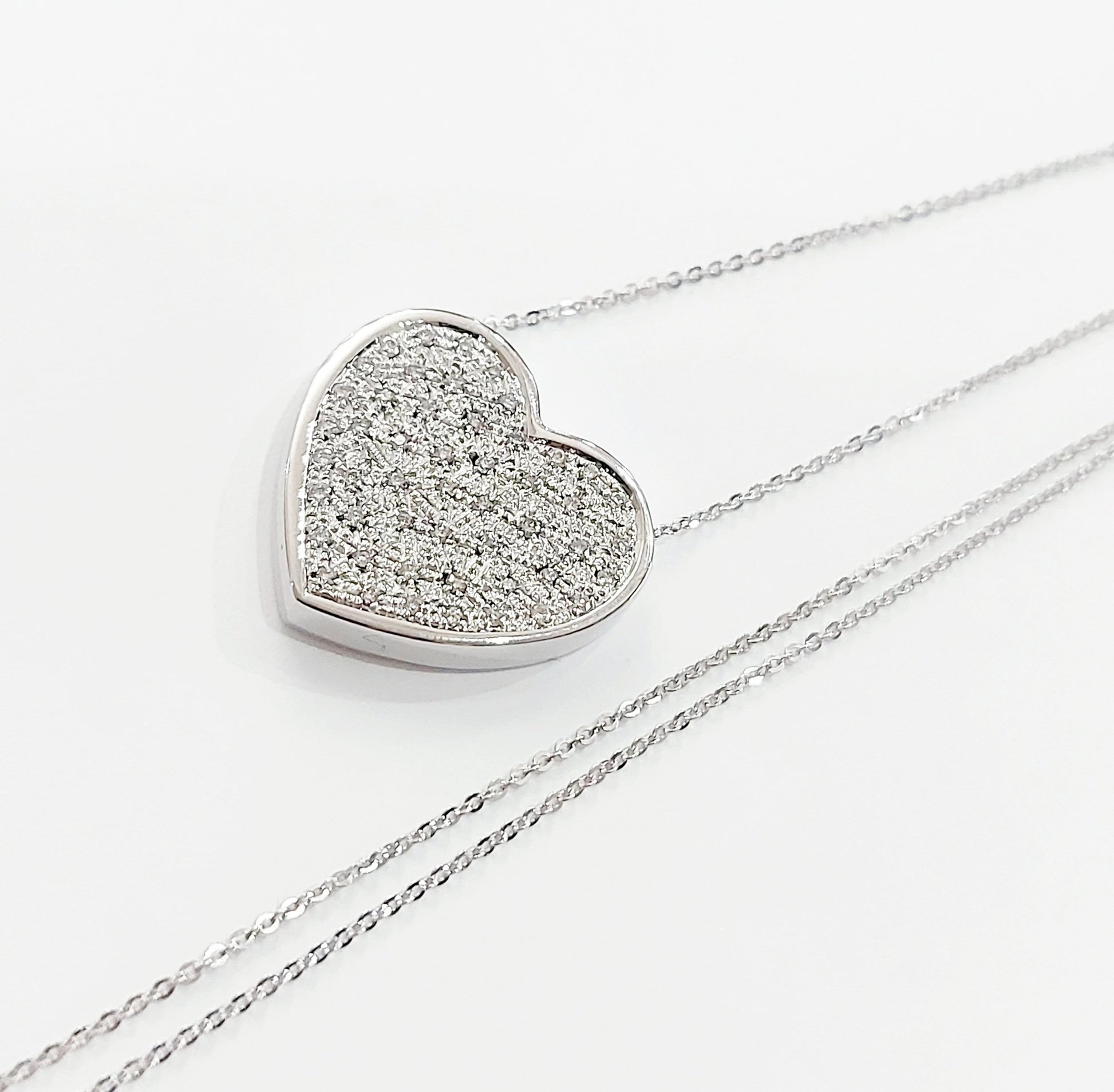 Collana e pendente cuore pavè in Oro Bianco con Diamanti 0,82 ct 18 kt (750)