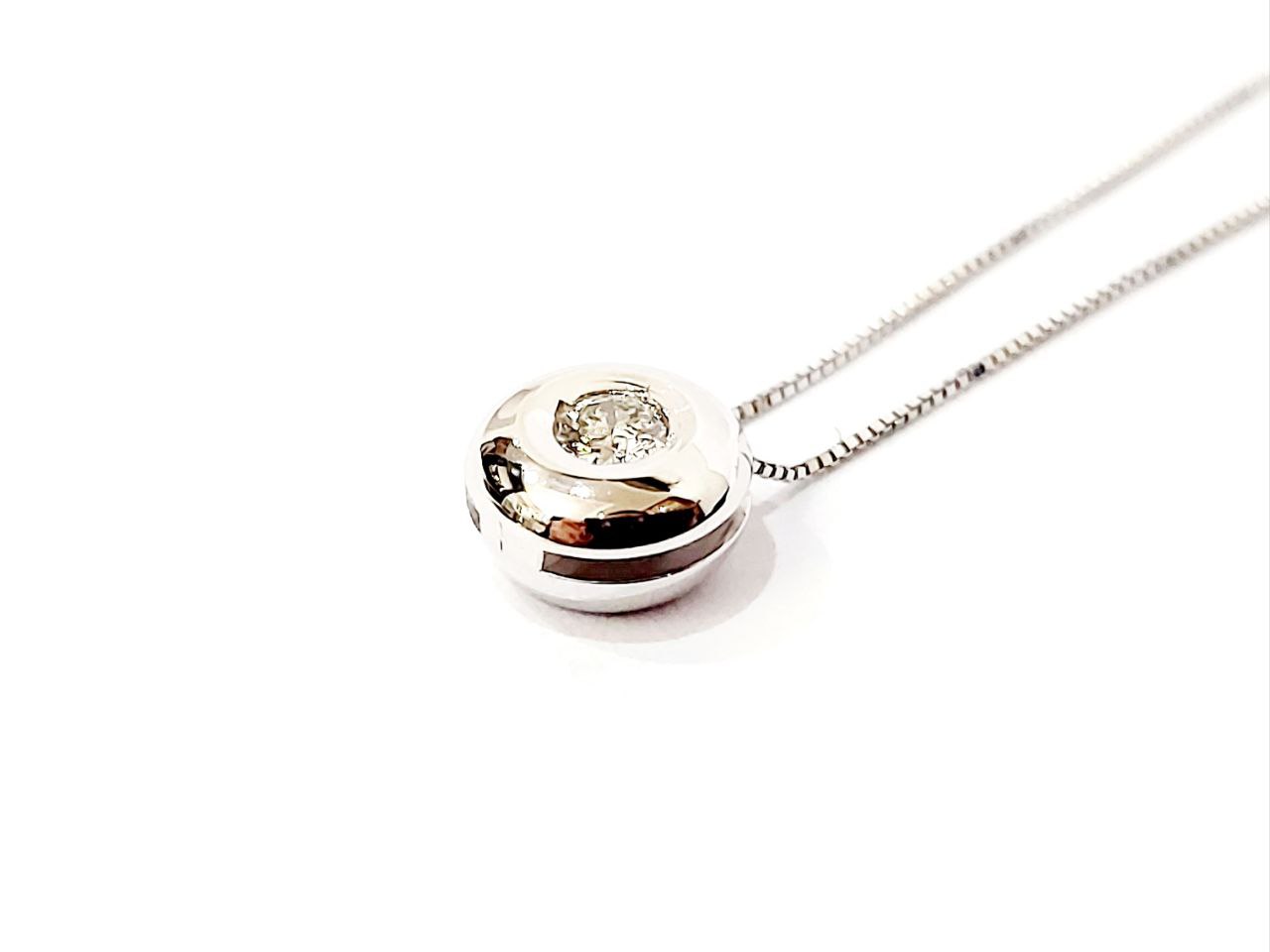 Collana con pendente punto luce, montatura bombata con diamante forma cipollina in oro Bianco – 18 Kt – ( 750 )