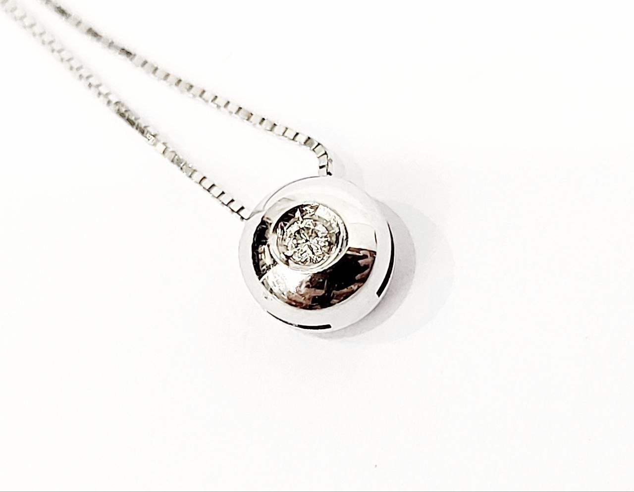 Collana con pendente punto luce, montatura bombata con diamante forma cipollina in oro Bianco – 18 Kt – ( 750 )