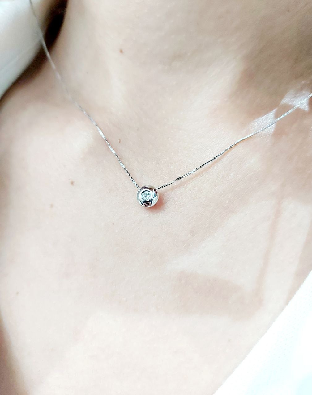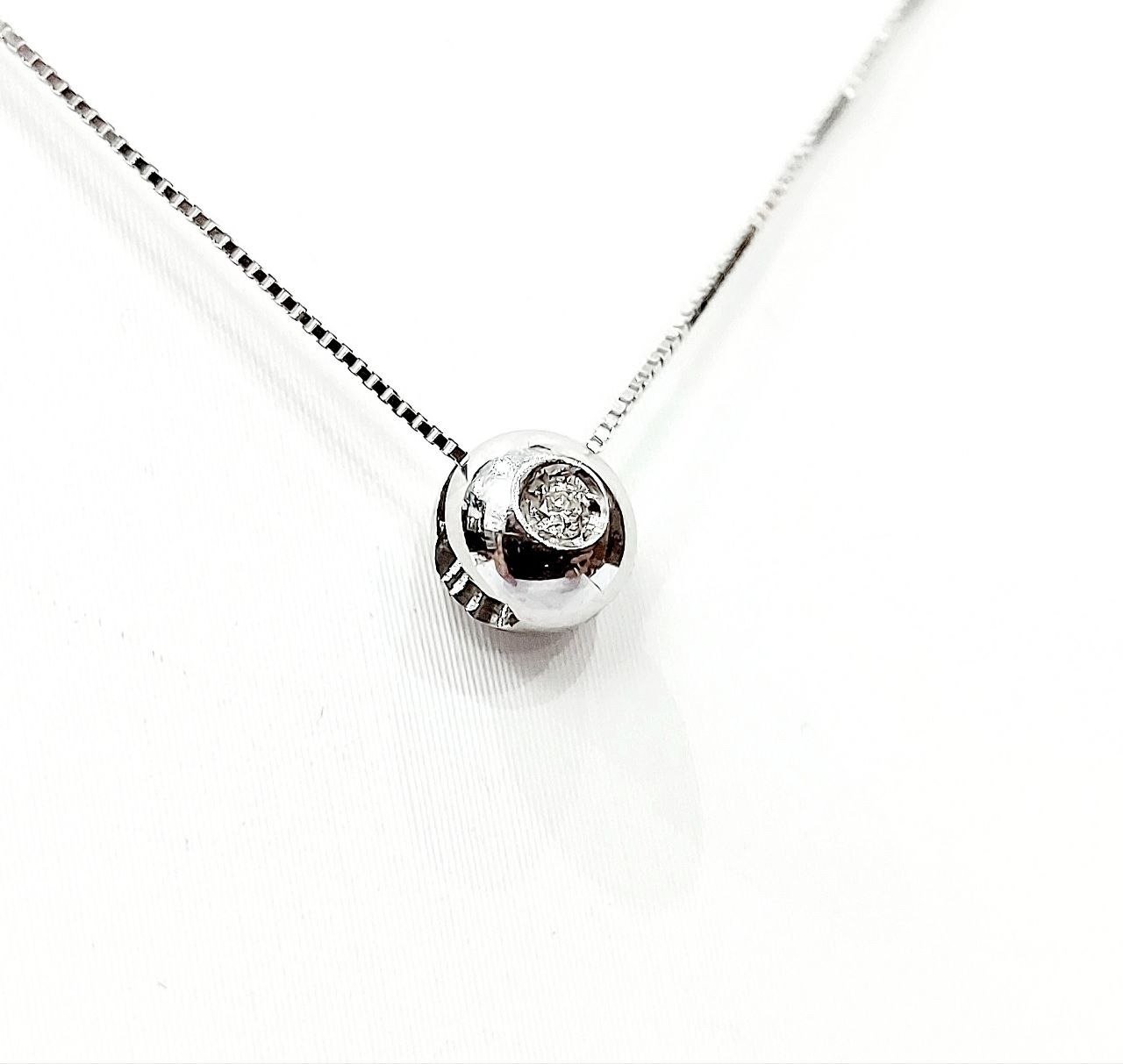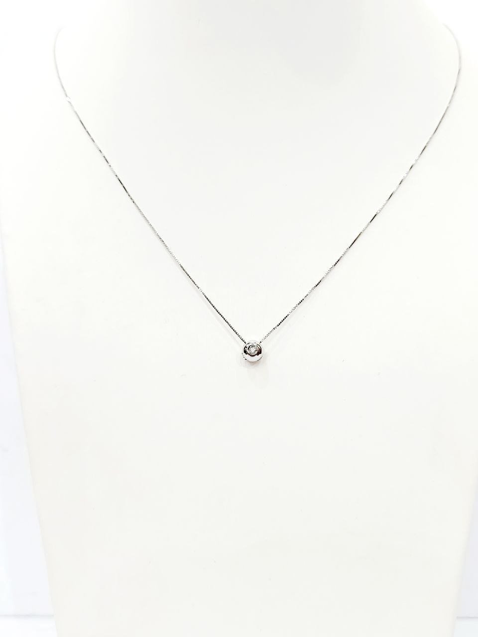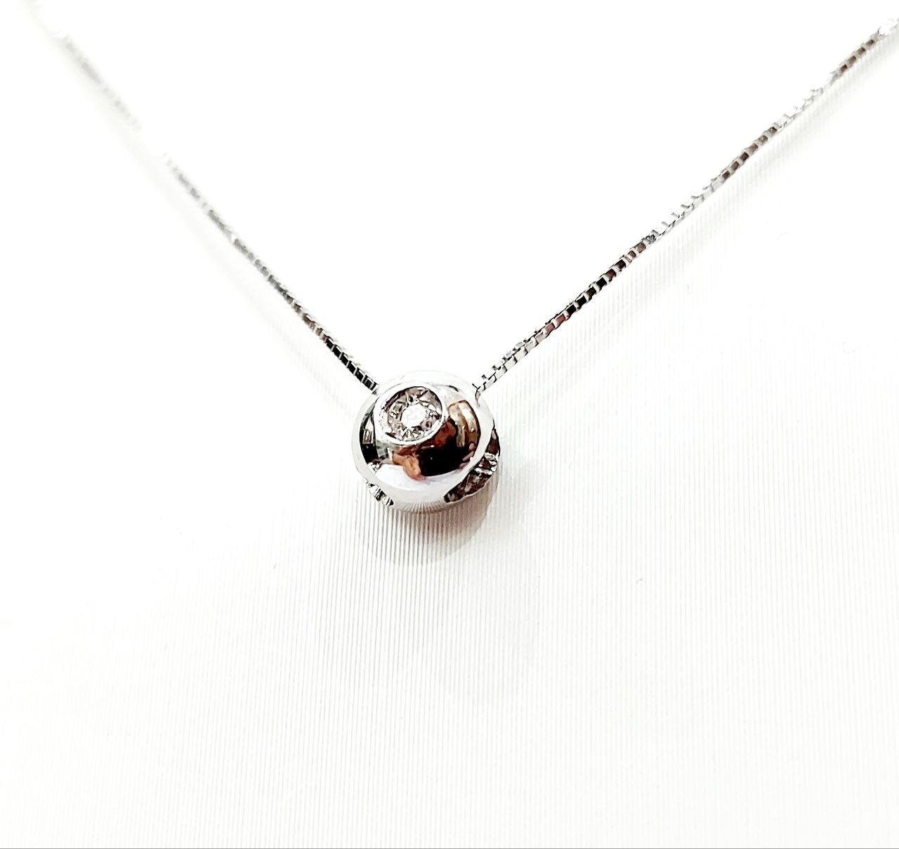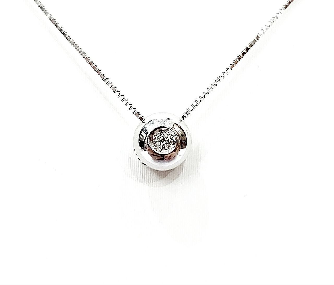Collana e pendente punto luce a cipollina in Oro Bianco con Diamante 0,10 ct 18 kt (750)