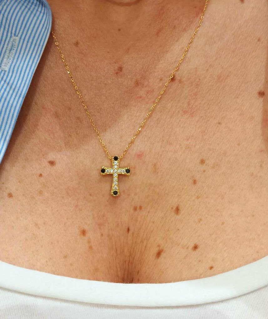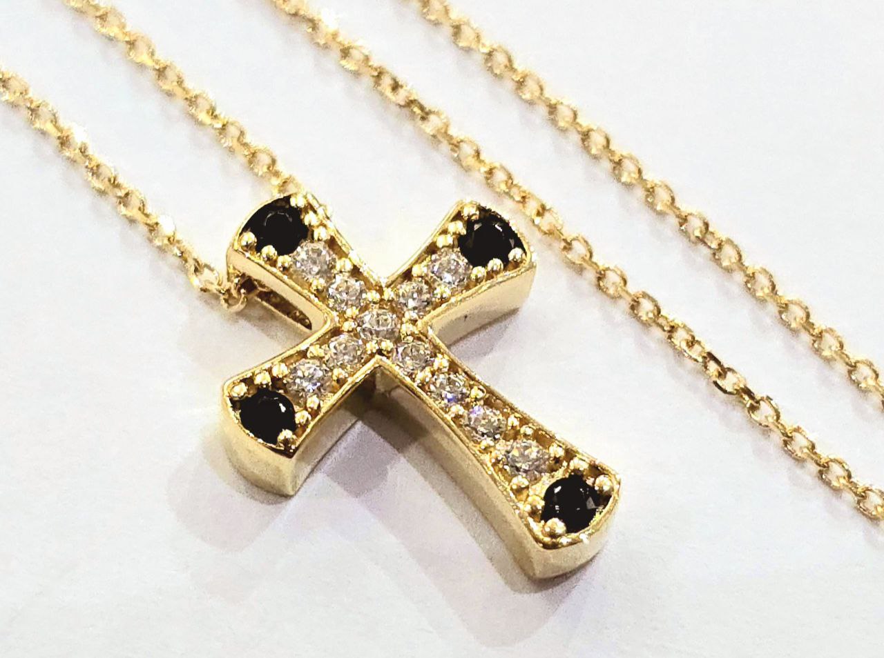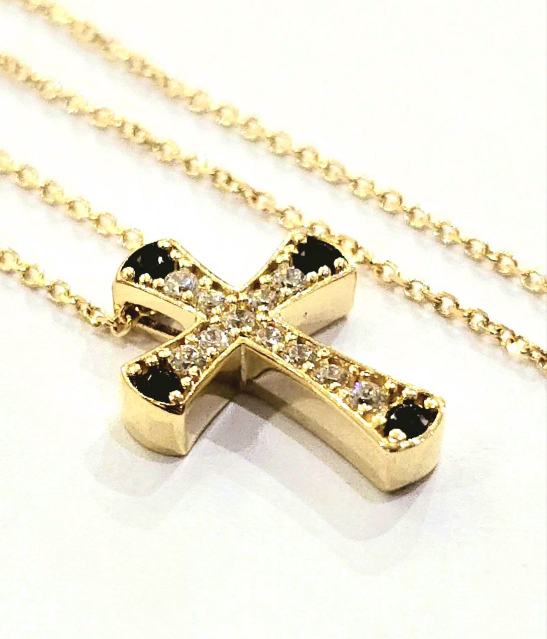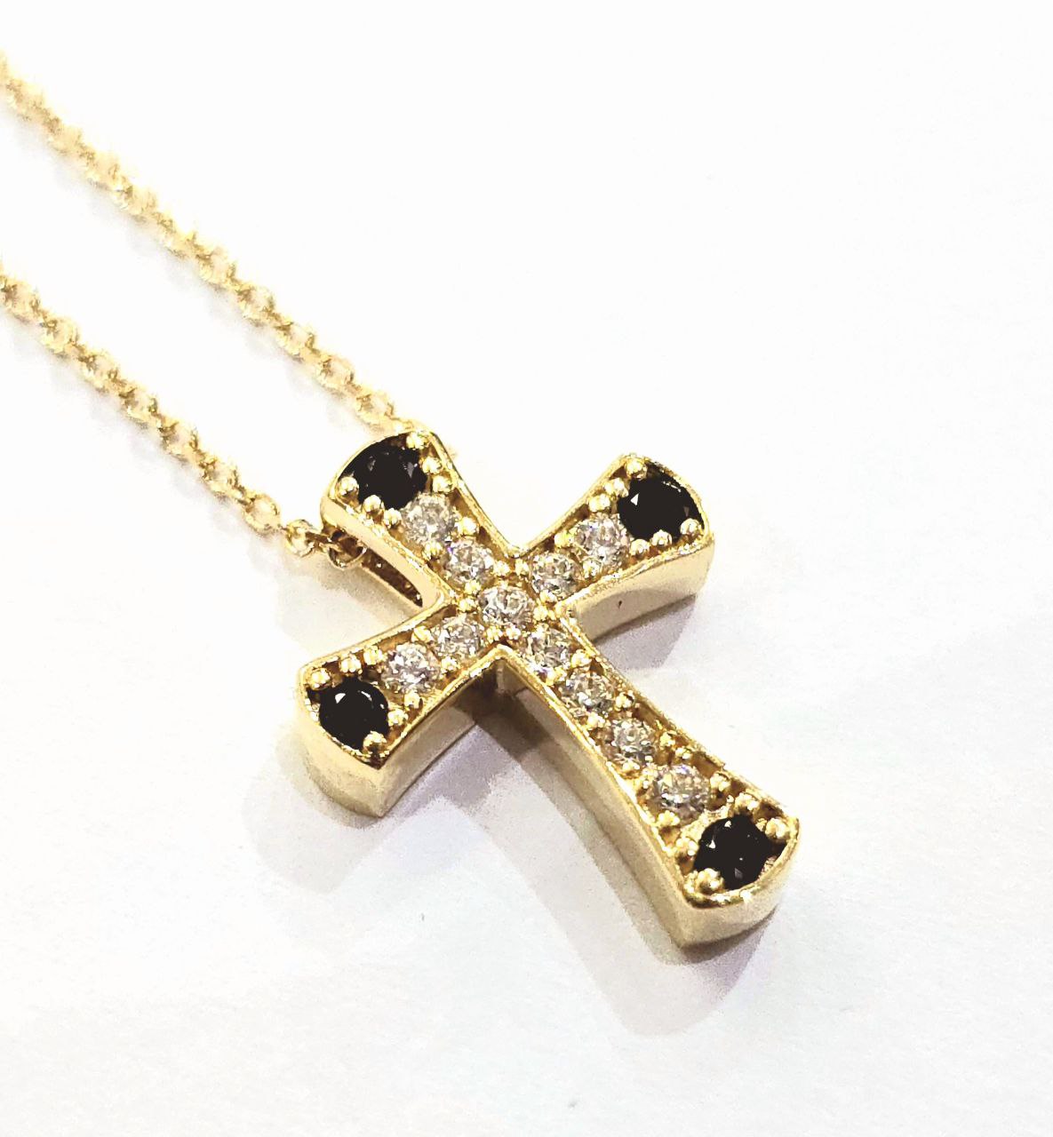 Collana Pendente Croce Unisex Oro 18kt-750 Diamanti Bianchi ct 0,30 Diamanti Neri ct 0,16