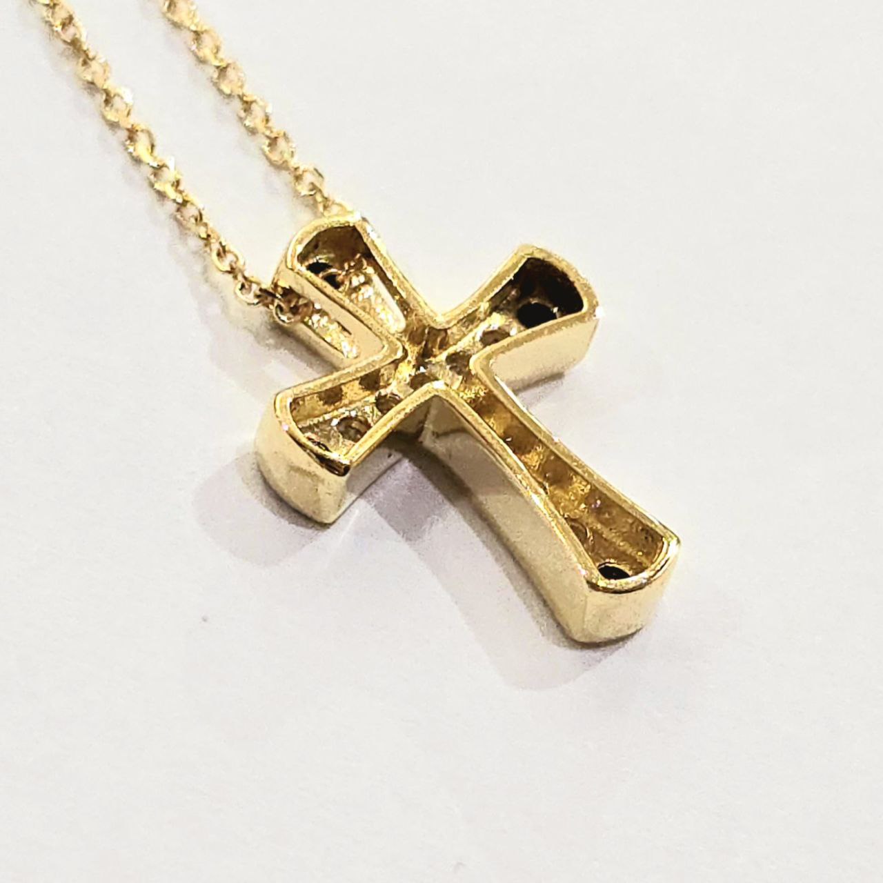 Collana rolo' con pendente Unisex a forma di Croce lavorata in Oro Giallo 18kt-750- Grammi 3,15 incastonata con Diamanti Bianchi e Diamanti neri