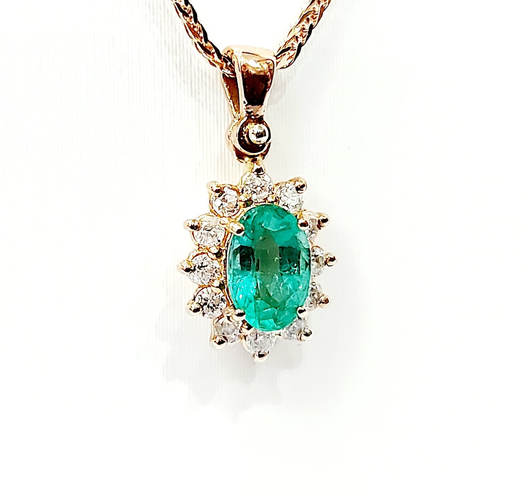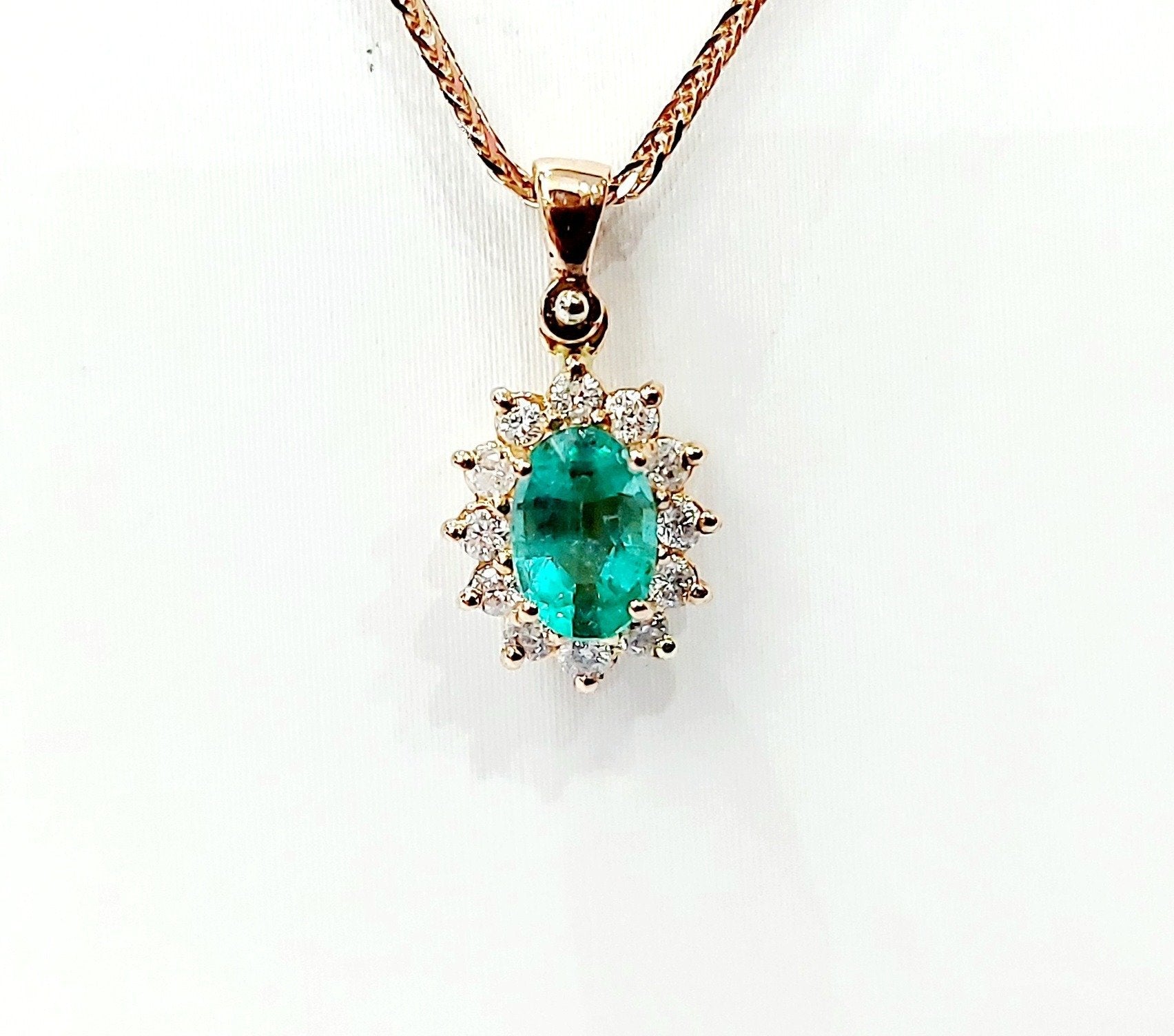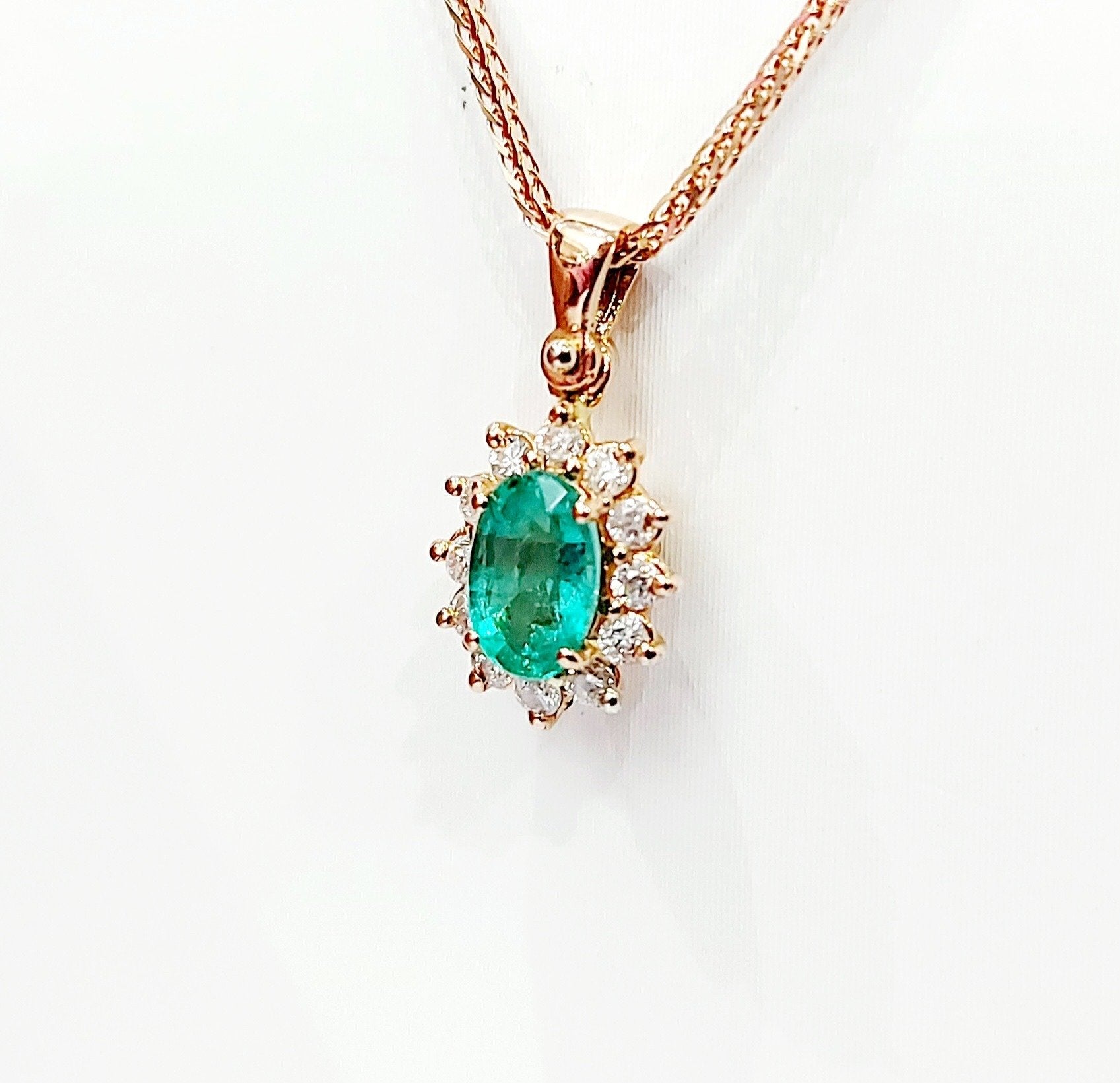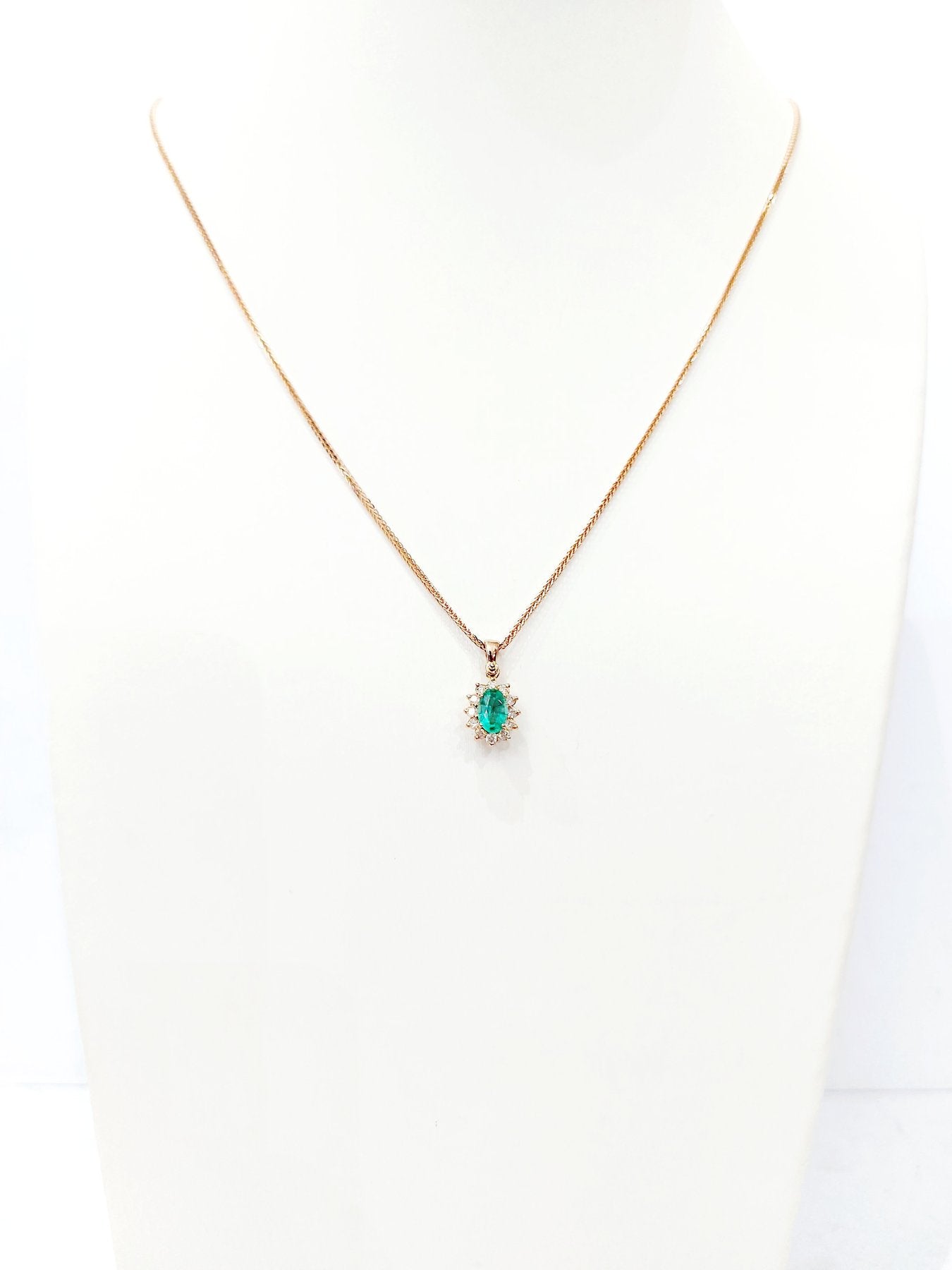 Collana con pendente in Oro Rosa con Diamanti 0,25 ct e Smeraldo Naturale 0,75 ct 18 kt (750)