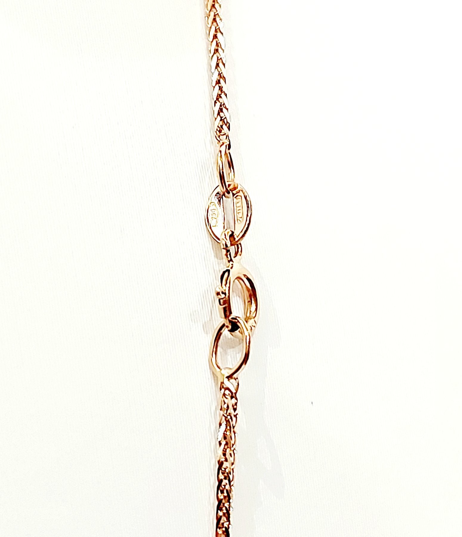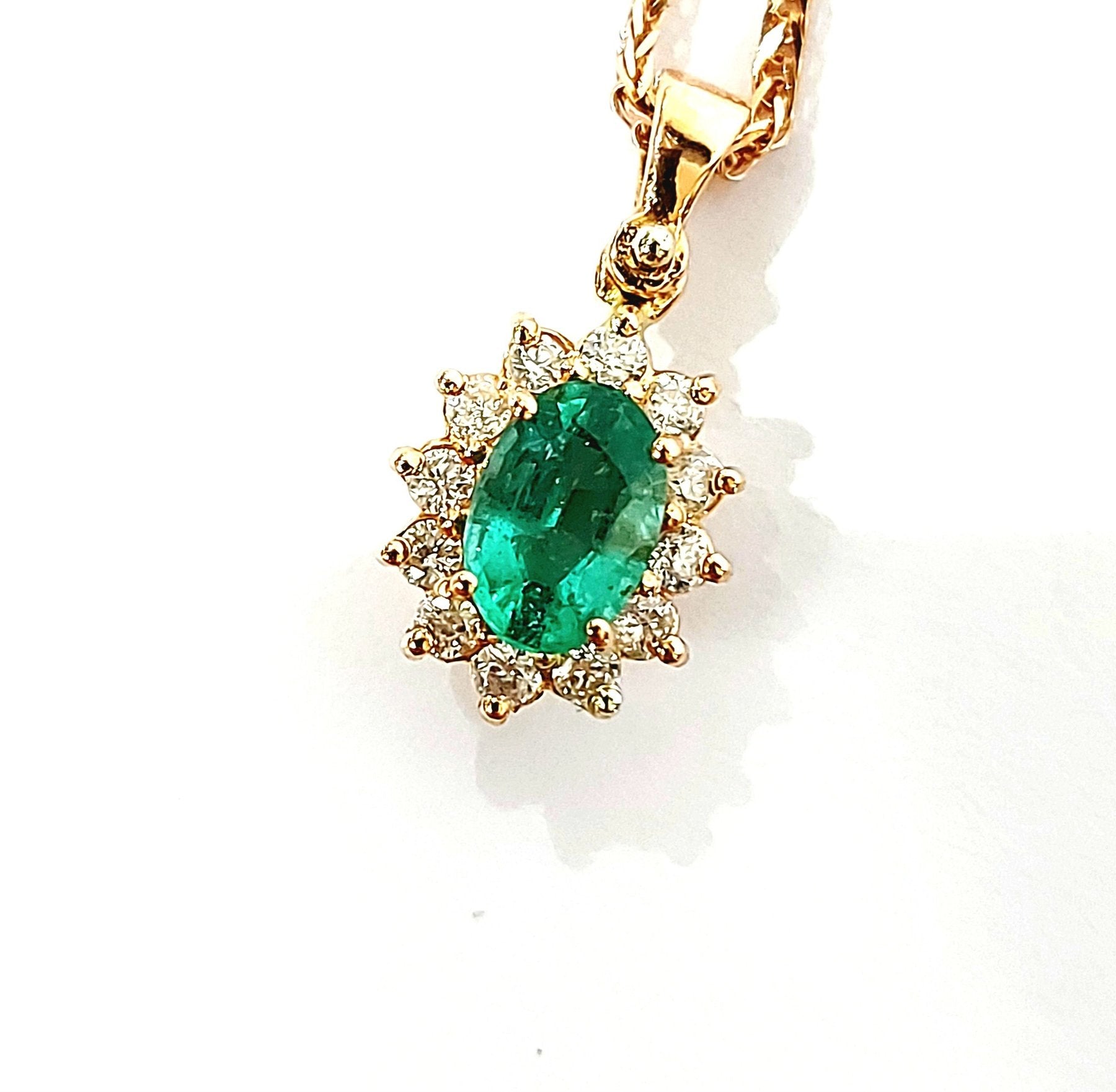 Collana spiga e pendente fantasia con Smeraldo ovale centrale 0,75 ct e Diamanti circolari 0,25 ct in Oro Rosa 18 kt (750) - Gr 2,60