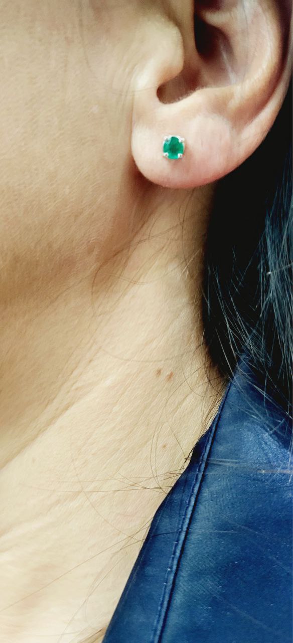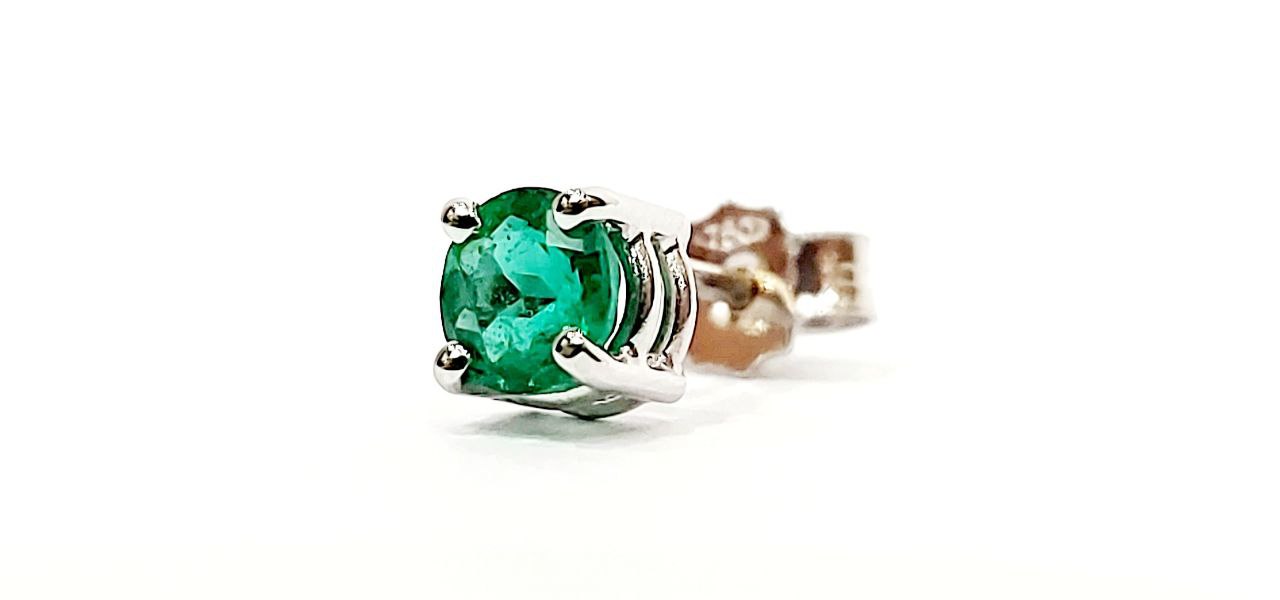 Mono orecchino punto luce con Smeraldo 0,50 ct in Oro Bianco 18 kt 0,70 gr