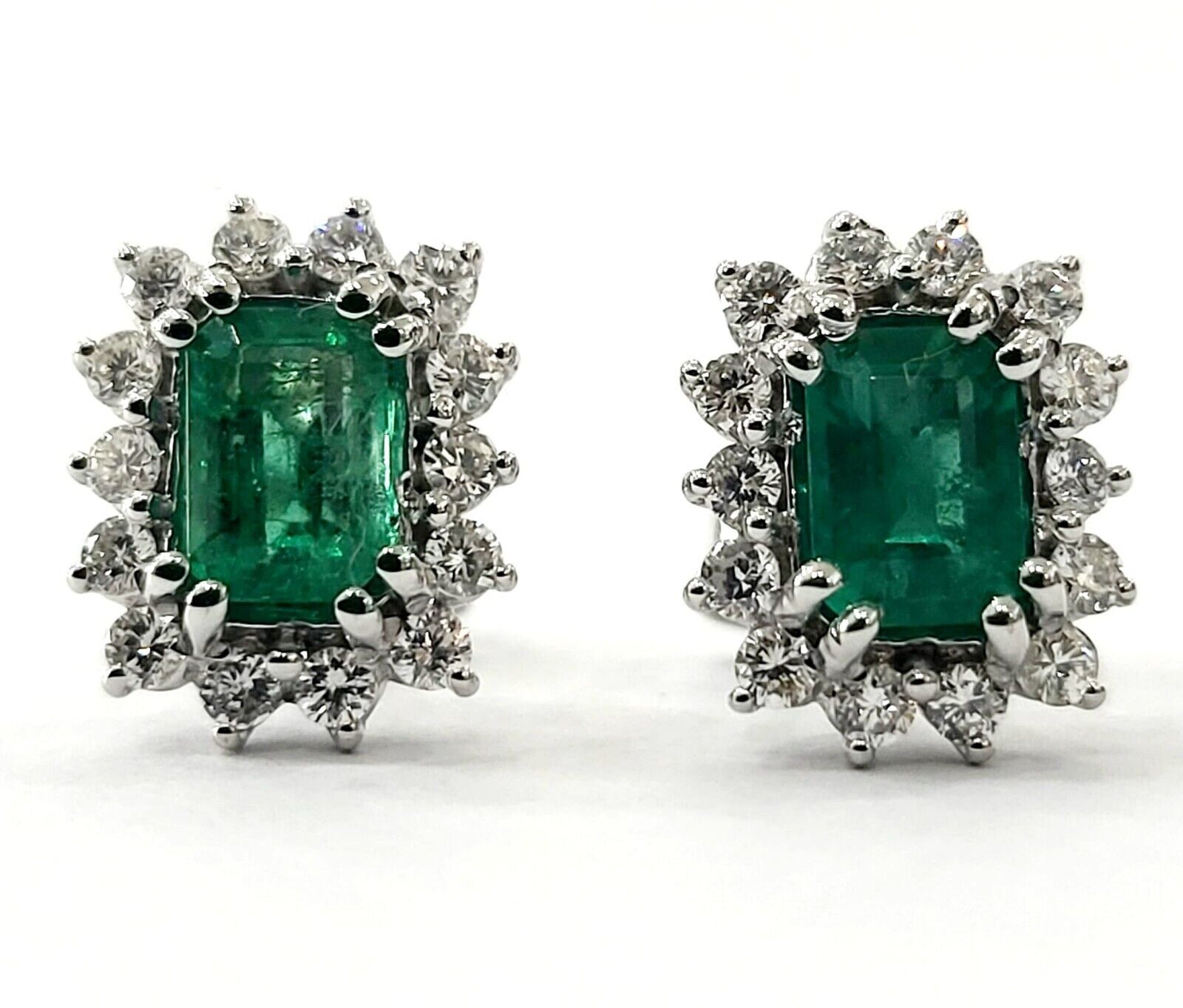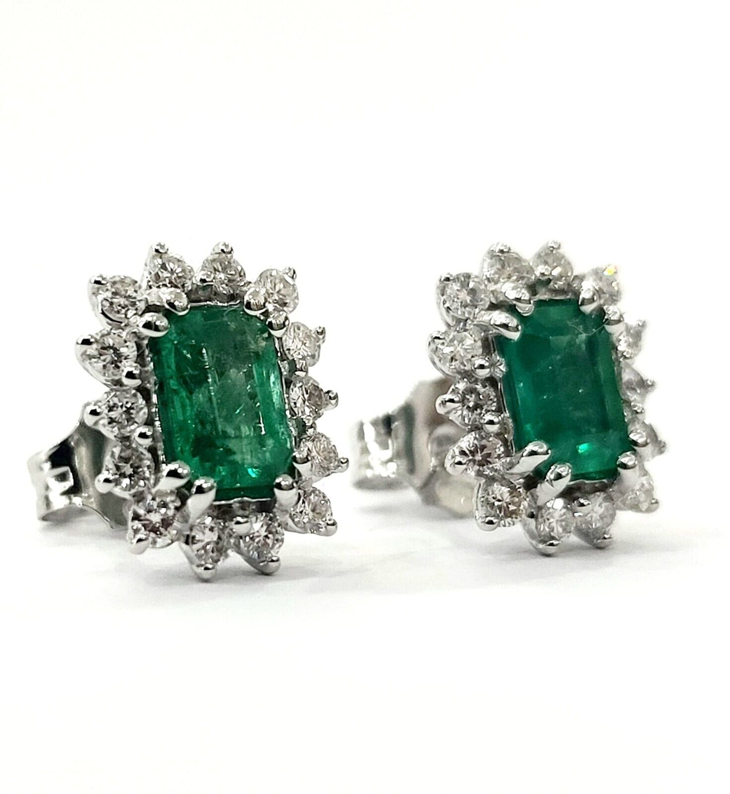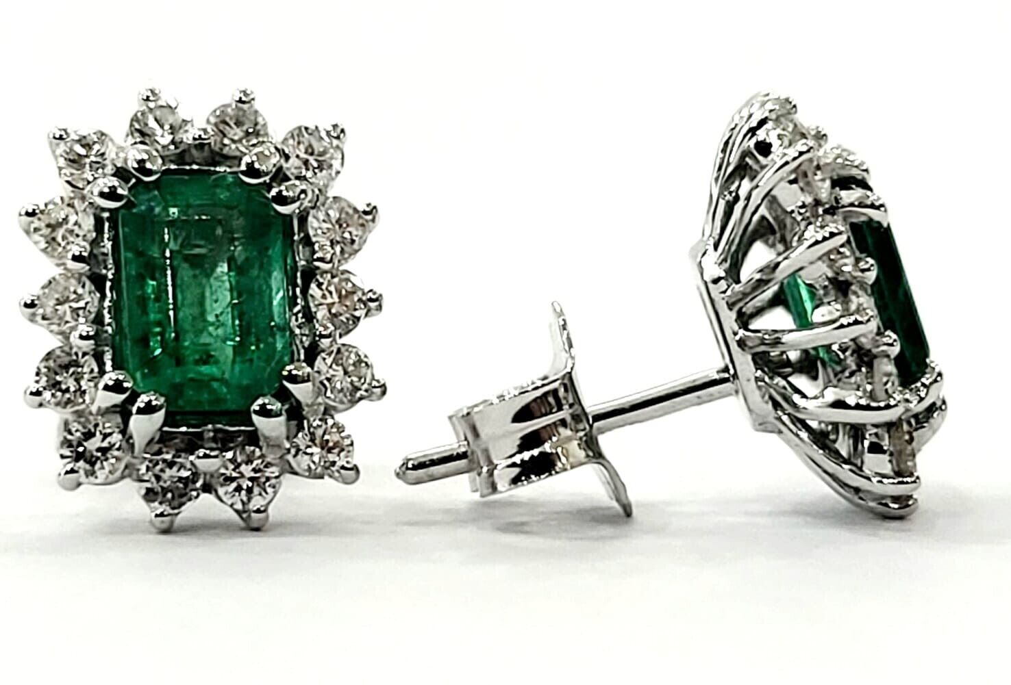 Orecchini a fantasia in Oro Bianco con Diamanti 0,56 ct e Smeraldi 1,35 ct 18 kt (750)