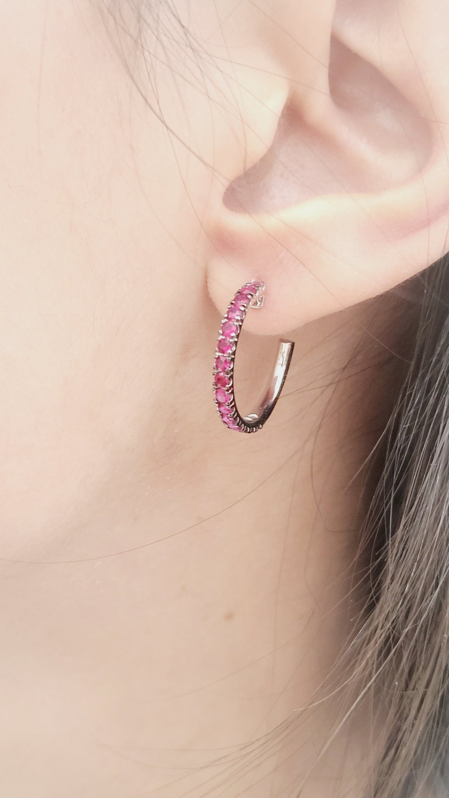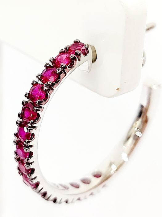 Orecchini a semicerchio Crieri con Rubini lavorati in Oro Bianco 18 kt (750)