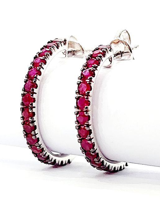 Orecchini a semicerchio in Oro Bianco Crieri Poesia con Rubini 1,40 ct 18 kt (750)